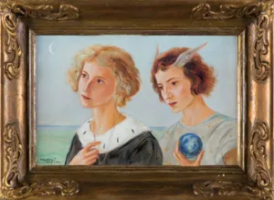 Wlastimil Hofman / Vlastimil Hofmann (Praga 1881 - Szklarska Poręba 1970) studiował w krakowskiej Szkole Sztuk Pięknych - początkowo pod kierunkiem Floriana Cynka, później także u Jana Stanisławskiego, Leona Wyczółkowskiego i Jacka Malczewskiego. W latach 1899-1902 uczył się jeszcze u Jeana Léona Gérôme’a w paryskiej École des Beaux-Arts. W czasie I wojny światowej przebywał w Pradze i w Paryżu; od 1920 stale mieszkał w Krakowie. Dużo wystawiał; należał do wielu stowarzyszeń twórczych - był współzałożycielem „Grupy Pięciu” (1905) i „Grupy Zero” (1908), członkiem Związku Artystów Czeskich „Manes”, a od 1911 członkiem Tow. Artystów Polskich „Sztuka”. W czasie II wojny światowej poprzez ZSRR i Turcję przedostał się do Jerozolimy, skąd w roku 1946 wrócił do Krakowa. Od roku 1947 stale mieszkał w Szklarskiej Porębie. Hofman malował przede wszystkim fantastyczno-symboliczne kompozycje o motywach ludowych oraz sceny rodzajowe, portrety i pejzaże. Jego obrazy mimo bliskich analogii i powiązań ze sztuką Malczewskiego odznaczają się zawsze indywidualnym charakterem, stylem i nastrojem.
