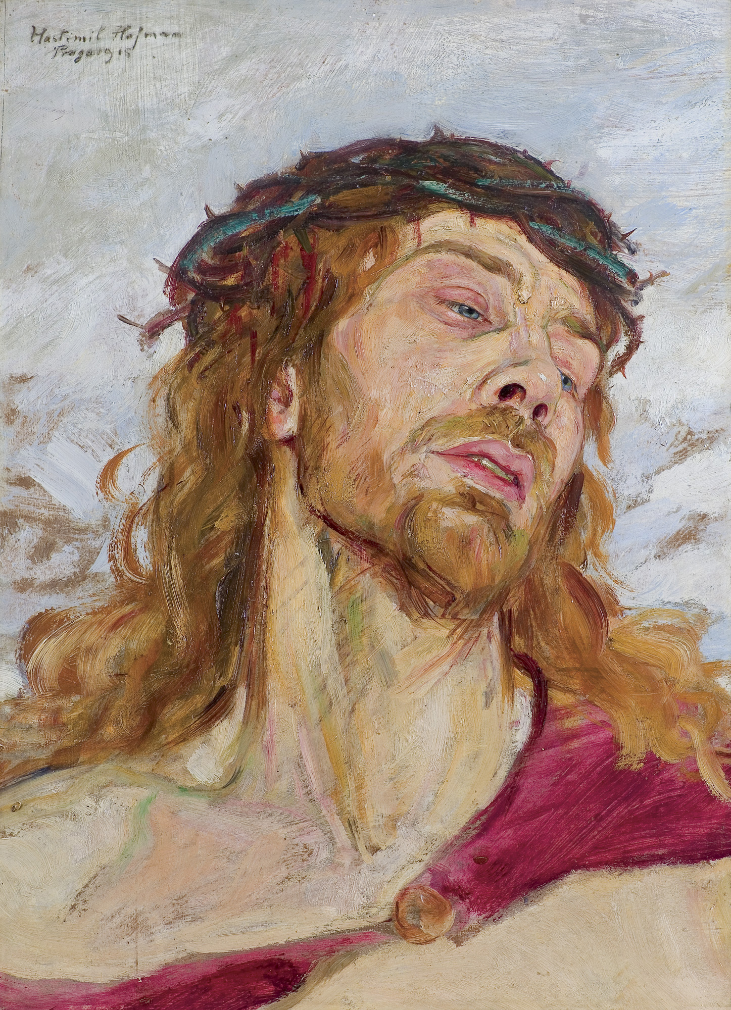 Wlastimil Hofman / Vlastimil Hofmann (Praga 1881 - Szklarska Poręba 1970) studiował w krakowskiej Szkole Sztuk Pięknych - początkowo pod kierunkiem Floriana Cynka, później także u Jana Stanisławskiego, Leona Wyczółkowskiego i Jacka Malczewskiego. W latach 1899-1902 uczył się jeszcze u Jeana Léona Gérôme’a w paryskiej École des Beaux-Arts. W czasie I wojny światowej przebywał w Pradze i w Paryżu; od 1920 stale mieszkał w Krakowie. Dużo wystawiał; należał do wielu stowarzyszeń twórczych - był współzałożycielem „Grupy Pięciu” (1905) i „Grupy Zero” (1908), członkiem Związku Artystów Czeskich „Manes”, a od 1911 członkiem Tow. Artystów Polskich „Sztuka”. W czasie II wojny światowej poprzez ZSRR i Turcję przedostał się do Jerozolimy, skąd w roku 1946 wrócił do Krakowa. Od roku 1947 stale mieszkał w Szklarskiej Porębie. Hofman malował przede wszystkim fantastyczno-symboliczne kompozycje o motywach ludowych oraz sceny rodzajowe, portrety i pejzaże. Jego obrazy mimo bliskich analogii i powiązań ze sztuką Malczewskiego odznaczają się zawsze indywidualnym charakterem, stylem i nastrojem.