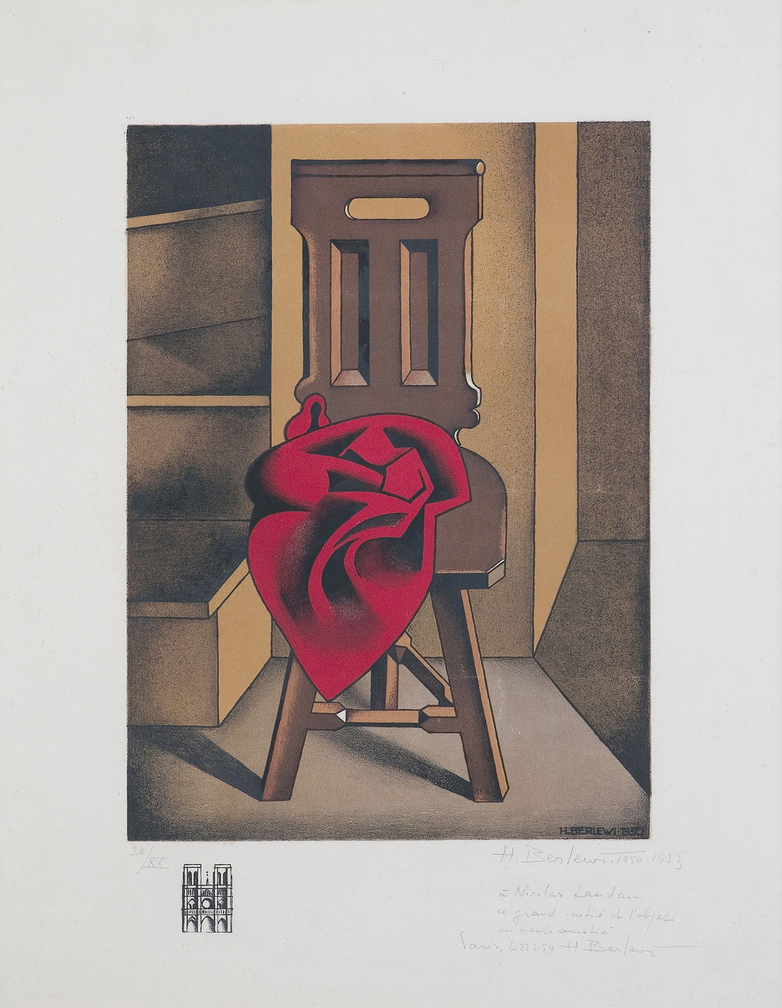 Henryk Berlewi (Warszawa 30 X 1894 - Paryż 2 VIII 1967) już jako uczeń gimnazjum uczęszczał na zajęcia w warszawskiej Szkole Sztuk Pięknych (1906-09). Następnie studiował w Académie des Beaux-Arts w Antwerpii (1909-10), w Ecole des Arts Décoratifs i Ecole des Beaux-Arts w Paryżu, by w 1913 powrócić do Warszawy i podjąć naukę w Szkole Rysunkowej pod kierunkiem Jana Kauzika (1913-15). W 1915-18 tworzył i wystawiał, m.in. w Zachęcie, portrety i kompozycje figuralne. Od 1918 datuje się zbliżenie Berlewiego z kręgami warszawskich futurystów i formistów. W jego pracach pojawia się deformacja i elementy ekspresjonizmu. Pod wpływem El Lissitzkiego, który w 1921 odwiedził Warszawę, zainteresował się ideą odnowy sztuki żydowskiej, podejmował wątki tematyczne związane z kulturą i życiem codziennym Żydów. W latach 1922-23 Berlewi przebywał w Berlinie, gdzie pod wpływem awangardowych kierunków i kontaktów z wybitnymi artystami radykalnie zmienił swą sztukę i wypracował teorię mechanofaktury, którą ogłosił drukiem w 1924 w Warszawie i Berlinie (w „Der Sturm“). Publikację artysta połączył z wystawami indywidualnymi w obu miastach. Wystawa warszawska miała miejsce w salonie samochodowym firmy Daimler-Benz, co współgrało z ideą mechanofaktury, zakładającą maksymalne zbliżenie sztuki i techniki, do czego prowadzić miało m.in. budowanie obrazu z powtarzalnych elementów geometrycznych. W 1924-26 Berlewi współtworzył wraz z innymi polskimi artystami grupę „Blok“. W 1926 powrócił do sztuki przedmiotowej, nie zrywając jednak z ruchem konstruktywistycznym. W 1928 wyjechał do Paryża, gdzie zdobył renomę jako portrecista. W latach II wojny światowej ukrywał się na południu Francji, w 1943-44 współpracował w Nicei z ruchem oporu. Po wojnie kontynuował malarstwo figuratywne aż do 1957, kiedy to pod wpływem nowych tendencji w sztuce, a także retrospektywnej wystawy konstruktywizmu w galerii Denise Renée, w której wziął udział, wrócił do abstrakcji. Nawiązał do teorii i praktyki mechanofaktury, traktując ją jako punkt wyjścia do stworzenia własnej wersji op-artu.