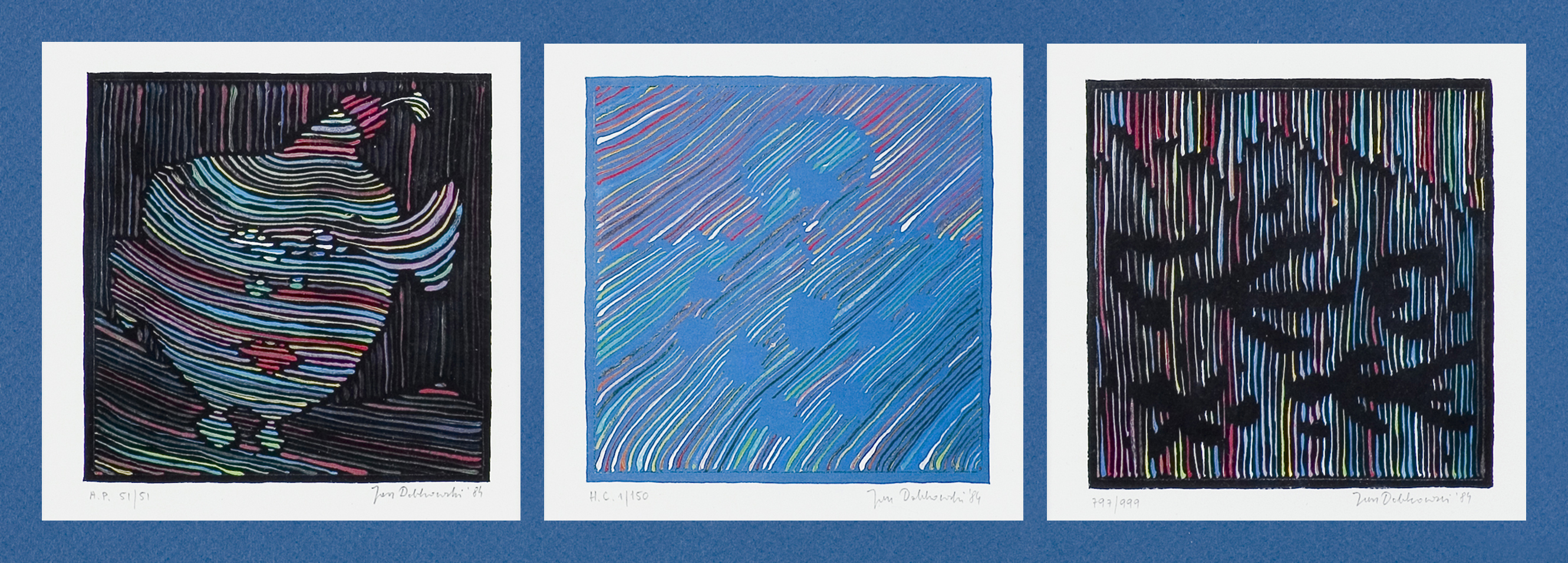 Jan Dobkowski (Łomża 1942, mieszka w Warszawie) studiował w latach 1962-1968 na Wydziale Malarstwa warszawskiej ASP pod kierunkiem prof. Juliusza Studnickiego i Jana Cybisa. Będąc jeszcze na studiach, w 1966, utworzył duet artystyczny, w którym jego partnerem był Jerzy (Jurry) Zieliński. Ich pierwsza wspólna wystawa pn. Neo-Neo-Neo odbyła się w Warszawie w 1967. Wystawiali wspólnie do 1970. W 1968 powstały pierwsze zielono-czerwone obrazy Dobkowskiego (używającego w tym czasie pseudonimu Dobson). W pracach tych, operujących giętkimi, falistymi liniami, w których upatrywano wpływów secesji, artysta używał sposobów rodem z op-artu dla wywołania złudzeń optycznych (wirowanie, mżenie, pozorny ruch form). Równolegle z obrazami tworzył też formy z płyt i folii do montowania w przestrzeni. Złoty medal na Sympozjum Złotego Grona w Zielonej Górze w 1971 i blisko roczny pobyt w USA na stypendium Fundacji Kościuszkowskiej w 1972 to kolejne etapy pełnej sukcesów kariery malarza. Wyraźną zmianę nastroju i wymowy jego prac przyniosły wydarzenia 1980-1981 roku, zwłaszcza wprowadzenie stanu wojennego. Monochromatyczne, ciemne płótna znaczył wtedy nikłymi, wiotkimi liniami rysunku. Najczęstszym motywem były patriotyczne i religijne symbole, dopowiadane tytułami nawiązującymi do realiów czasu. Kolejna radykalna zmiana nastąpiła ok. 1990. Symbolicznym zwiastunem nowego okresu stał się olbrzymi, radosny, eksplodujący bogactwem barw, kształtów i ruchu obraz ...a życie sobie płynie... (394 x 588 cm) z 1990-1991. Podobne cechy formalne charakteryzują twórczość artysty w całej dekadzie lat 90. Równolegle z malarstwem Dobkowski pracuje nad rysunkiem, będącym bardzo ważnym dopełnieniem jego twórczości.
