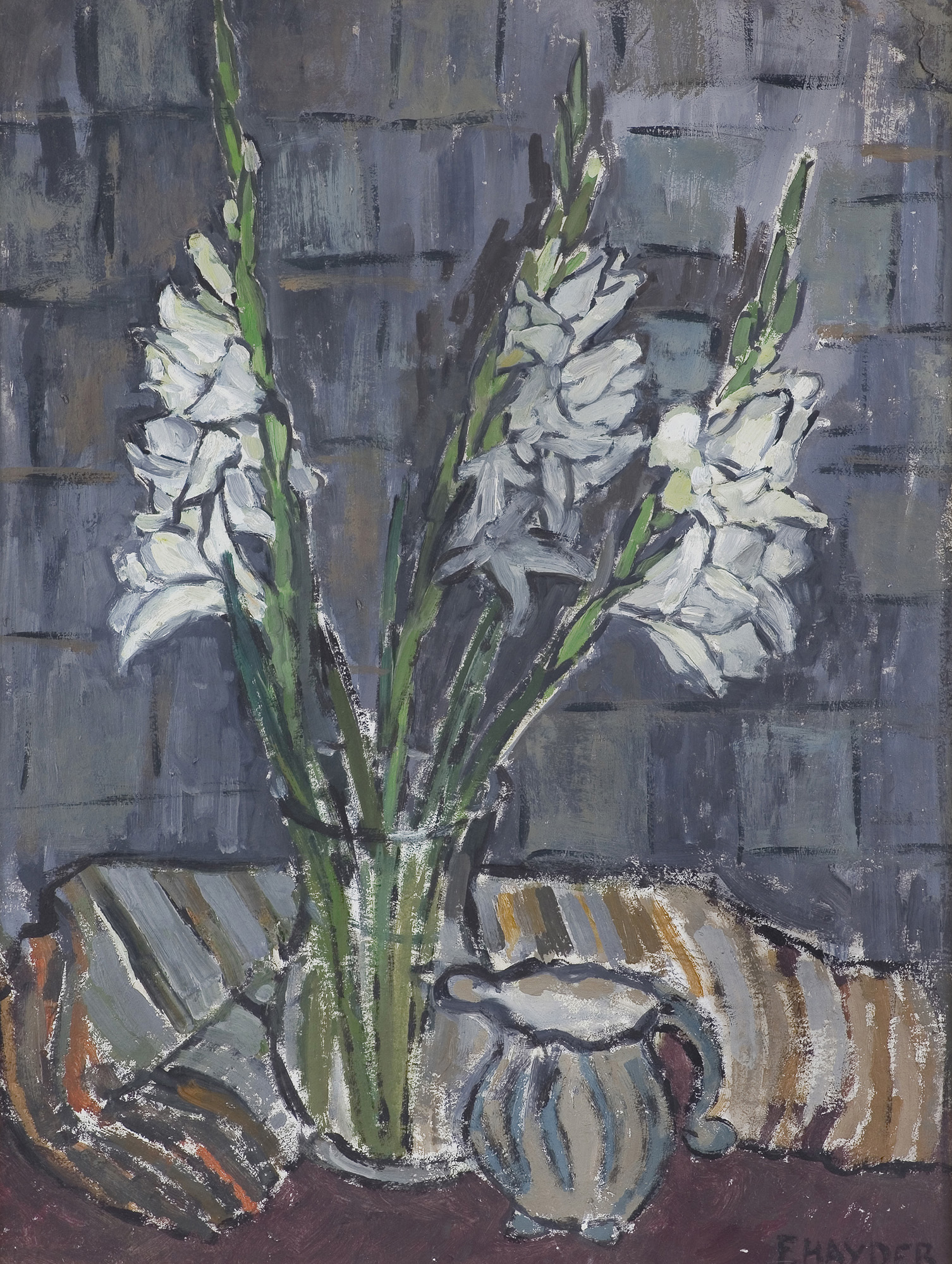 Fryderyk Antoni Hayder (Przemyśl 25 IV 1905 - Gliwice 1994) malarz, grafik; w latach 1925-1933 studiował w ASP w Krakowie - malarstwo w pracowni Józefa Mehoffera, rzeźbę u Xawerego Dunikowskiego, otrzymując dyplom z wyróżnieniem. Od 1935 zamieszkał w Warszawie. Obok malarstwa zajmował się grafiką użytkową i aranżacją wnętrz. Przed wojną brał udział w wystawach m.in. w Zachęcie (1937) i w TPSP w Krakowie (1938). Podczas Powstania Warszawskiego większa część prac uległa zniszczeniu. W 1945 artysta zamieszkał w Gliwicach, uratowane rysunki i szkicowniki z lat 1926-1944, przekazał do Muzeum w Gliwicach, gdzie po wojnie pracował jako kustosz. Współtworzył Gliwicki Oddział ZPAP, uczestniczył w wielu wystawach ogólnopolskich (Wystawa Plastyki Ziem Nadodrzańskich, W-wa 1959; Malarstwo w XV-lecie PRL, W-wa 1961). Miał szereg wystaw indywidualnych. m.in. 1957 CBWA Katowice, Szczecin; w 1984 z okazji 50-lecia pracy twórczej w Muzeum Okręgowym w Przemyślu; 1985 BWA Katowice, 1987 Zachęta Warszawa. Malował kompozycje figuralne, pejzaże, sceny rodzajowe i martwe natury. Po wojnie podejmował tematykę zaangażowana ideologicznie, od połowy lat 50. większą uwagę poświęcił stronie formalnej, malując w konwencji postkubistycznej. Obraz budował za pomocą linearnej siatki grubych konturów, kolor wyważony, rzadko o intensywnym natężeniu kładziony był płasko. Na początku lat 60. malował szereg abstrakcji o charakterze informelowskich, gdzie konstrukcja obrazu uległa zmiękczeniu, by w latach 70. powrócić do konturu wyznaczającego układ form i przestrzeń. Dążył do syntezy, malował dużymi płaszczyznami, upraszczał rysunek. Podejmował tematykę religijną, cykl „Droga Krzyżowa” znajduje się w Muzeum Narodowym Ziemi Przemyskiej w Przemyślu, jego prace są m.in. w zbiorach Muzeum Górnośląskiego w Bytomiu i w Muzeum w Gliwicach.