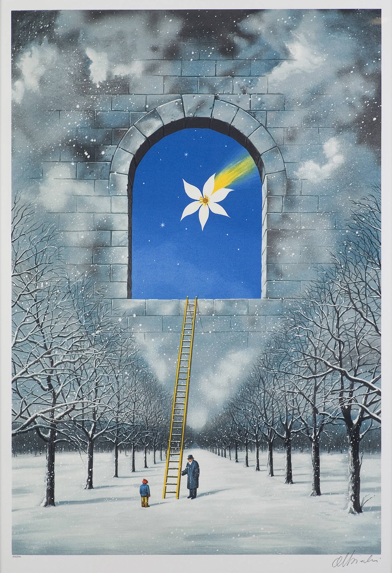 Rafał Olbiński (Kielce 1945, mieszka w Warszawie) - studiował na Wydziale Architektury Politechniki Warszawskiej, gdzie uzyskał dyplom w 1969. Od lat studenckich zajmował się grafiką użytkową i plakatem. Uczestniczył w wielu polskich i międzynarodowych wystawach związanych z grafiką i plakatem. Był autorem oprawy graficznej magazynu "Jazz Forum". W 1981 wyjechał z Polski i osiadł w Nowym Jorku gdzie kantynuował twórczość plakatową, a także zajął się malarstwem, rysunkiem prasowym i ilustracją. Debiutował w 1981 okładką do pisma "Psychology Today". Publikował w czasopismach takich jak "Newsweek", "Time", "Business Week", "The New York Times", "Atlantic Monthly", "Playboy", "New Yorker", "Omni". Od 1985 wykładał w School of Visual Arts w Nowym Jorku. Od wielu lat projektuje też plakaty dla New York City Opera. W 1994 otrzymał paryską nagrodę za najbardziej pamiętny plakat roku (International Oscar for the World's Most Memorable Poster "Prix Savignac 1994"), w 1995 wygrał konkurs na plakat "Nowy Jork – stolica świata". Jest reprezentowany w zbiorach takich, jak Museum of Modern Art w Nowym Jorku, Library of Congress Print Collection w Waszyngtonie, Muzeum Plakatu w Wilanowie oraz w wielu innych publicznych i prywatnych kolekcjach na całym świecie. Od lat 90. często bywa i wystawia w Polsce, obecnie mieszka w Warszwie. Jego prace odznaczają się specyficznym typem obrazowania, który zaskarbił mu opinię surrealisty. Dzięki zaskakującym zestawieniom elementów obrazu, łączeniu różnych planów i niezwykłemu skalowaniu, a także zawsze obecnej w pracach Olbińskiego narracji, jego dzieła cieszą się niesłabnącym zainteresowaniem i popularnością.