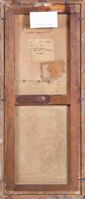– na prawo nalepka z nr. 12 oraz zakreślonym w kółku nr. 42 [oł.] odnoszącym się do rozmiaru podobrazia;