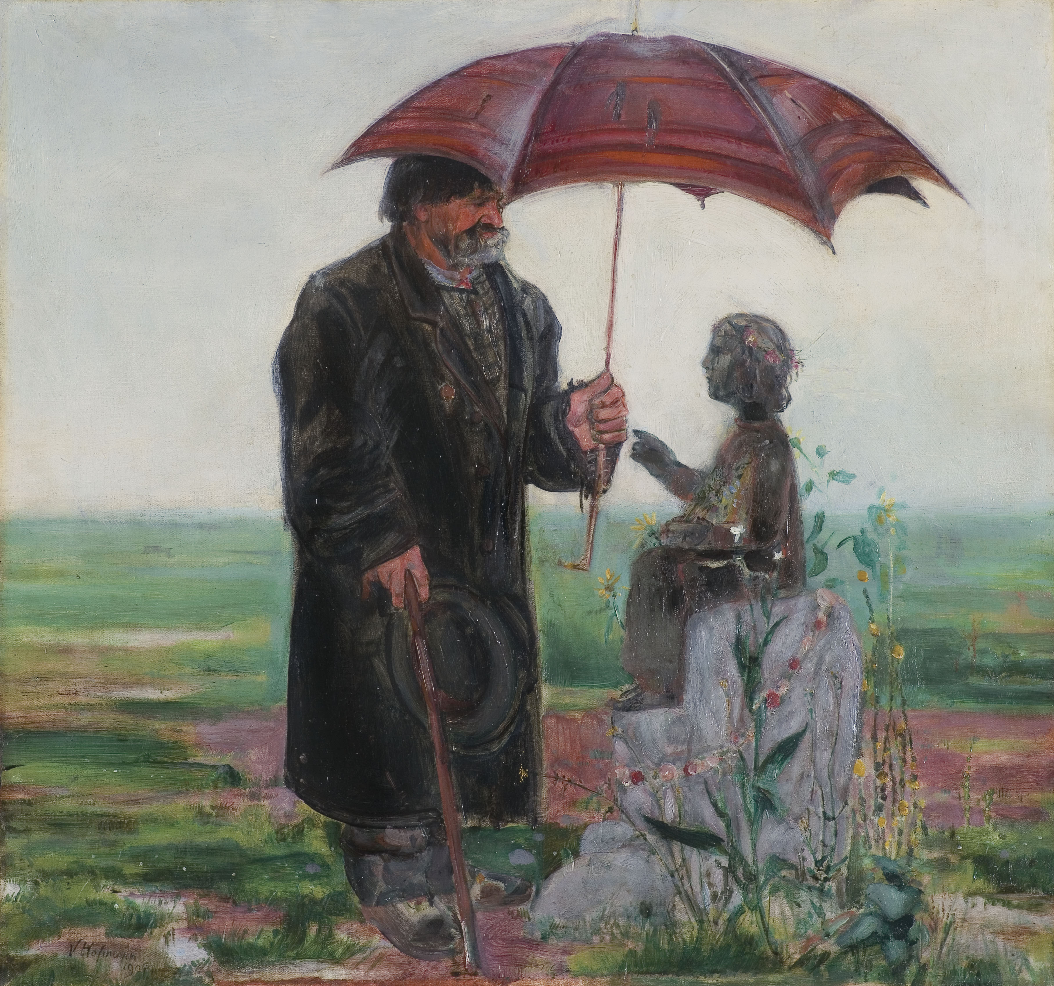 Wlastimil Hofman / Vlastimil Hofmann (Praga 1881 - Szklarska Poręba 1970) studiował w krakowskiej Szkole Sztuk Pięknych - początkowo pod kierunkiem Floriana Cynka, później także u Jana Stanisławskiego, Leona Wyczółkowskiego i Jacka Malczewskiego. W latach 1899-1902 uczył się jeszcze u Jeana Léona Gérôme’a w paryskiej École des Beaux-Arts. W czasie I wojny światowej przebywał w Pradze i w Paryżu; od 1920 stale mieszkał w Krakowie. Dużo wystawiał; należał do wielu stowarzyszeń twórczych - był współzałożycielem „Grupy Pięciu” (1905) i „Grupy Zero” (1908), członkiem Związku Artystów Czeskich „Manes”, a od 1911 członkiem Tow. Artystów Polskich „Sztuka”. W czasie II wojny światowej poprzez ZSRR i Turcję przedostał się do Jerozolimy, skąd w roku 1946 wrócił do Krakowa. Od roku 1947 stale mieszkał w Szklarskiej Porębie. Hofman malował przede wszystkim fantastyczno-symboliczne kompozycje o motywach ludowych oraz sceny rodzajowe, portrety i pejzaże. Jego obrazy mimo bliskich analogii i powiązań ze sztuką Malczewskiego odznaczają się zawsze indywidualnym charakterem, stylem i nastrojem.