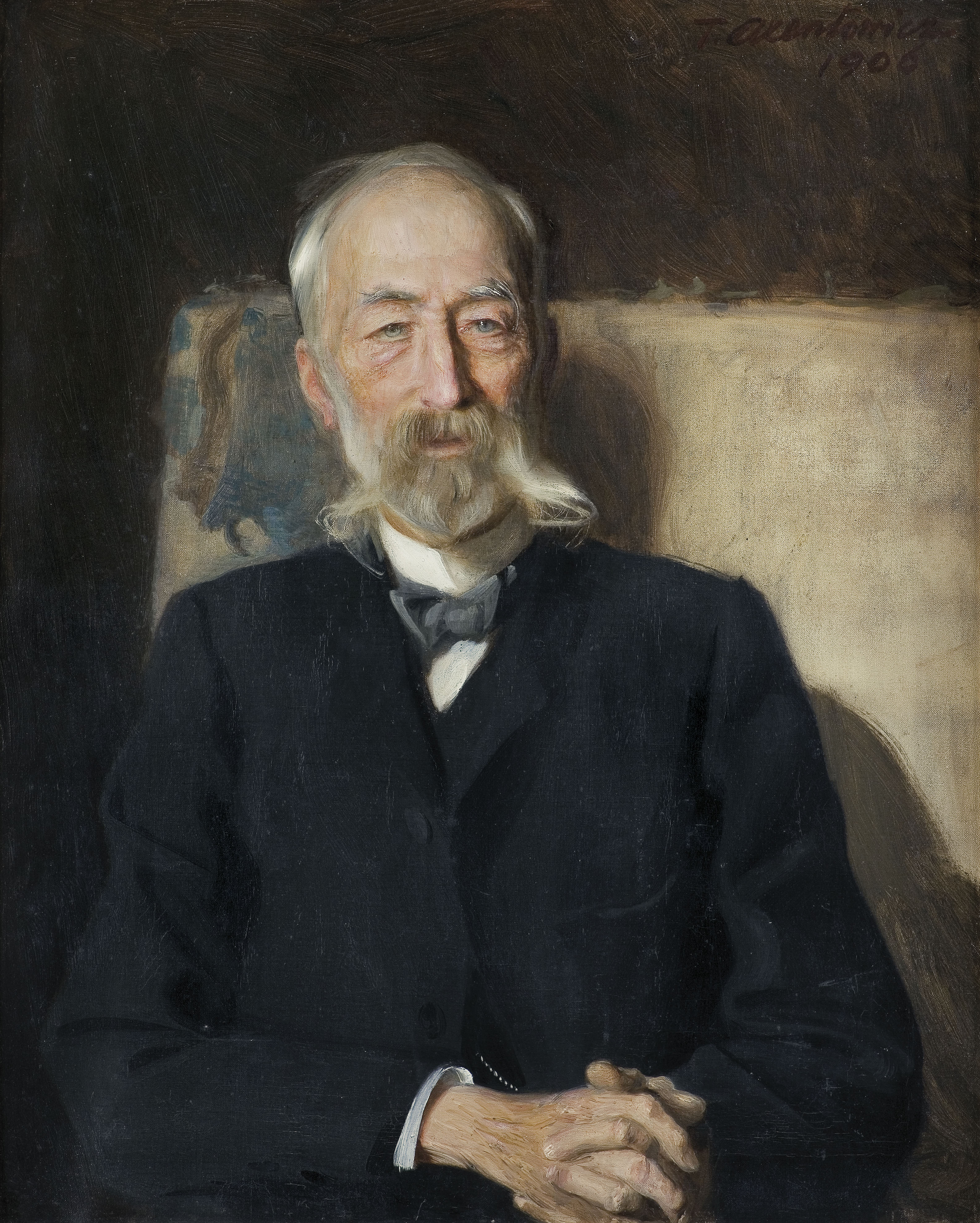 Teodor Axentowicz (Braszów w Siedmiogrodzie 1859 - Kraków 1938) – malarz, pastelista, litograf – był jednym z najbardziej znanych i cenionych malarzy polskich. Kształcił się w Akademii Sztuk Pięknych w Monachium pod kierunkiem Gabriela Hackla, Aleksandra Wagnera, Gyuli Benczúra. Studia uzupełniał w Paryżu, gdzie następnie przebywał przez lat kilkanaście. Brał udział w paryskich Salonach; w 1890 otrzymał członkostwo Société Nationale des Beaux-Arts. W tym czasie wielokrotnie wyjeżdżał również do Londynu. W 1895 powrócił do kraju i zamieszkał na stałe w Krakowie, powołany na profesora tamtejszej Szkoły Sztuk Pięknych (od 1900 Akademii). W uczelni tej nauczał nieprzerwanie do 1934, dwukrotnie pełniąc funkcję rektora (lata 1910-11 oraz 1927-28). Był jednym z członków-założycieli Towarzystwa Artystów Polskich „Sztuka”, członkiem wiedeńskiej „Secesji” i współpracownikiem jej pisma „Ver Sacrum”. Powodzenie przyniosły mu zwłaszcza idealizowane wizerunki wytwornych dam oraz wdzięczne portrety dziecięce. Malował też obrazy o tematyce rodzajowej; był jednym z pierwszych malarzy Huculszczyzny i Hucułów. Tworzył obrazy historyczne i kompozycje symboliczne związane z upływem czasu, przemijaniem, starością. We wczesnym, monachijskim okresie były to obrazy utrzymane w duchu akademickiego realizmu; na późniejszą twórczość artysty wywarło wpływ angielskie malarstwo XVIII w. oraz dzieła malarzy współczesnych - Boldoniego, Whistlera, Sargenta. Jego obrazy cechuje dekoracyjność, elegancja, świeżość subtelnej gamy kolorów i delikatna secesyjna stylizacja. Początkowo malował olejno i akwarelą, a po 1890 przede wszystkim mistrzowsko opanowaną techniką pastelu. Zajmował się ilustratorstwem i litografią, projektował plakaty wystaw „Sztuki”.