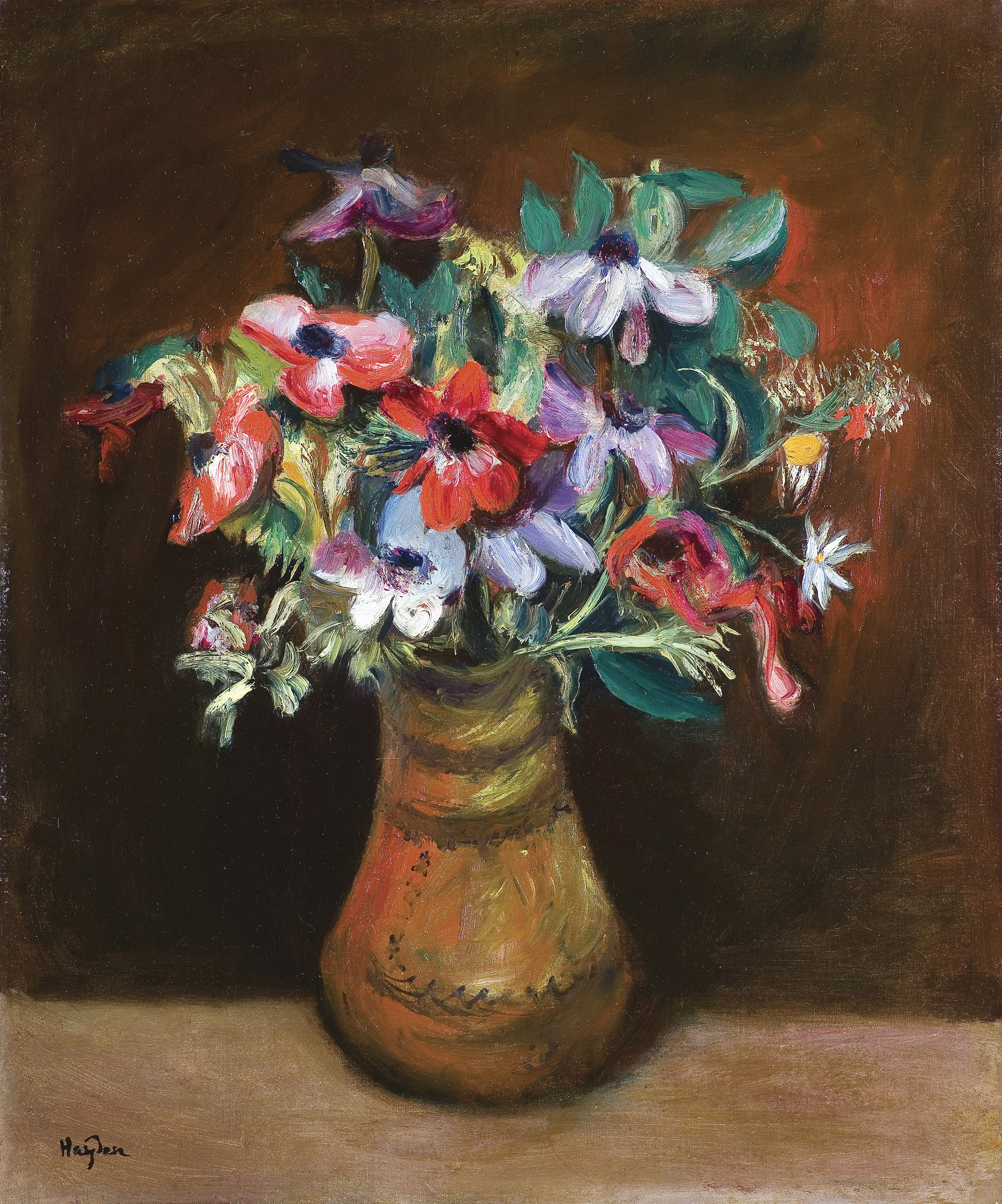 Henryk Hayden (Warszawa 1883 - Paryż 1970) był jednym z najwybitniejszych malarzy polskiego pochodzenia związanych ze środowiskiem École de Paris. Studia artystyczne rozpoczął w warszawskiej Szkole Sztuk Pięknych; równolegle kształcił się także na Politechnice Warszawskiej. W 1907 wyjechał do Paryża, gdzie zapisał się jeszcze do Académie „La Palette”. Od 1908 często wyjeżdżał do Bretanii, kontaktując się tam z W. Ślewińskim. Po 1915 związał się z kręgiem paryskiej awangardy artystycznej, m.in. P. Picassem, J. Grisem, G. Severinim czy H. Matisseem. We Francji pozostał na stałe. W 1920 odwiedził rodzinę w Polsce, ale jego związki z krajem były dość luźne – z rzadka tylko przesyłał obrazy na wystawy. Wiele natomiast wystawiał we Francji; od 1909 regularnie brał udział w paryskich Salonach, miał też wystawy indywidualne. W czasie II wojny światowej przebywał w południowej Francji i wówczas nawiązała się jego wieloletnia przyjaźń z S. Beckettem. Malował pejzaże, portrety i martwe natury, wykazujące początkowo związki z malarstwem Ślewińskiego, a później (1912-21) twórczością Cezanne’a i kubizmem. Po roku 1922 tworzył realistyczne portrety i pejzaże; pod koniec życia powrócił do doświadczeń kubistycznych.
