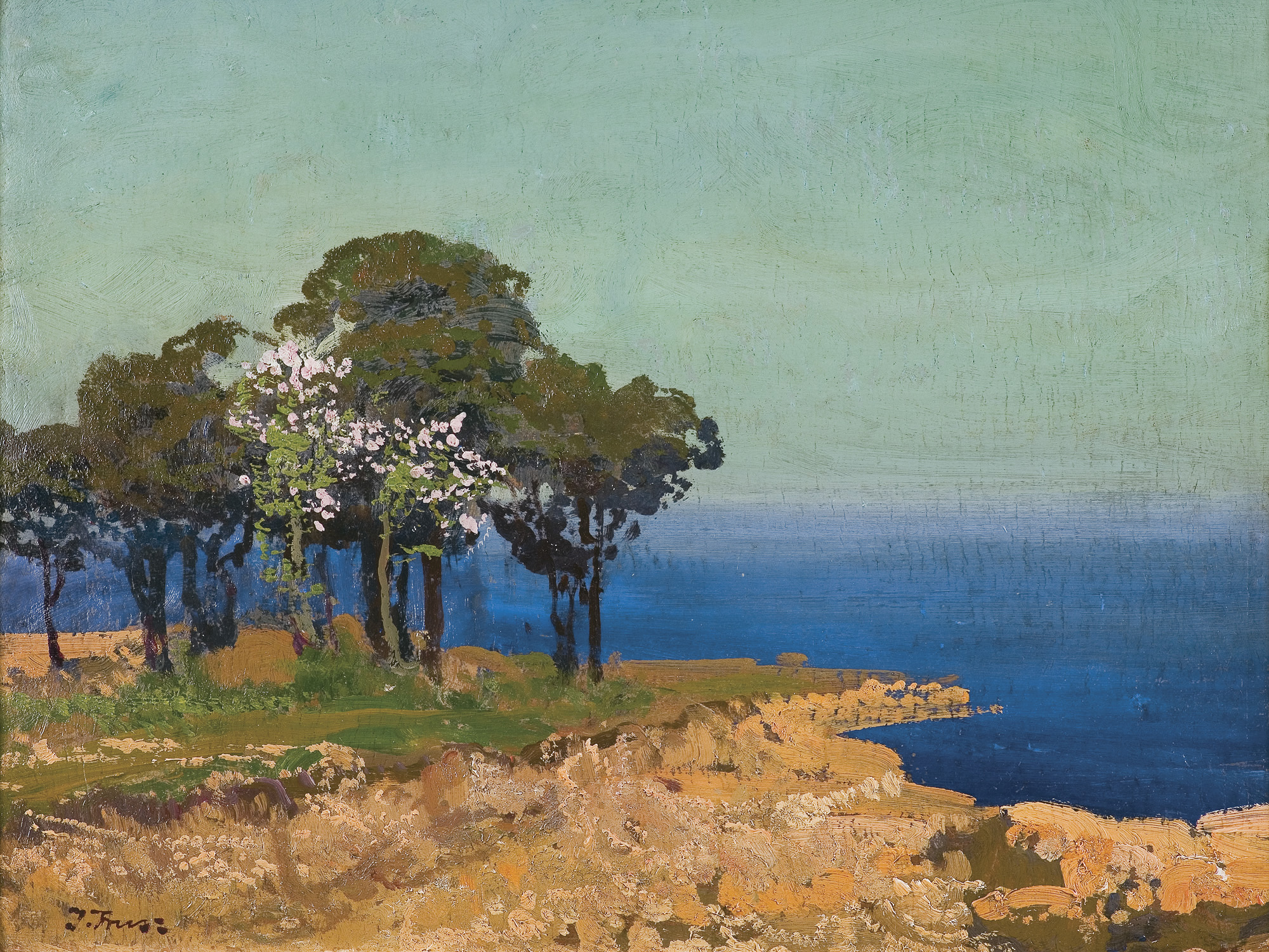 Iwan Trusz (Wysocko 1869 - Lwów 1941) studiował w Krakowskiej Szkole Sztuk Pięknych u I. Jabłońskiego, W. Łuszczkiewicza, J. Unierzyskiego, L. Loefflera, a w latach 1895-97 także u L. Wyczółkowskiego i w pracowni pejzażu J. Stanisławskiego. W 1894 wyjechał do Wiednia i jako wolny słuchacz przez kilka tygodni uczęszczał do tamtejszej ASP. W 1897 równie krótko uczył się w prywatnej szkole A. Ažbego w Monachium. Po studiach wiele podróżował - dwukrotnie, w 1902 i 1908 był we Włoszech, później też w Palestynie i Egipcie, w 1901 i 1902 jeździł na Krym, podróżował po Ukrainie. Stale mieszkał we Lwowie, gdzie w dawnym domu artysty znajduje się obecnie poświęcone mu muzeum. Był przede wszystkim pejzażystą - malował krajobrazy z dalekich podróży oraz nastrojowe pejzaże z Ukrainy. Tworzył także portrety i rodzajowe sceny o tematyce huculskiej. Uprawiał ilustratorstwo, współpracował z ukraińskim teatrem we Lwowie. Zajmował się krytyką artystyczną, pisując artykuły do ukraińskich czasopism „Buducznist“, „Literaturno-Naukowyj Wistnik“, „Artystycznyj Wistnik“ i pracując przy ich redakcji.