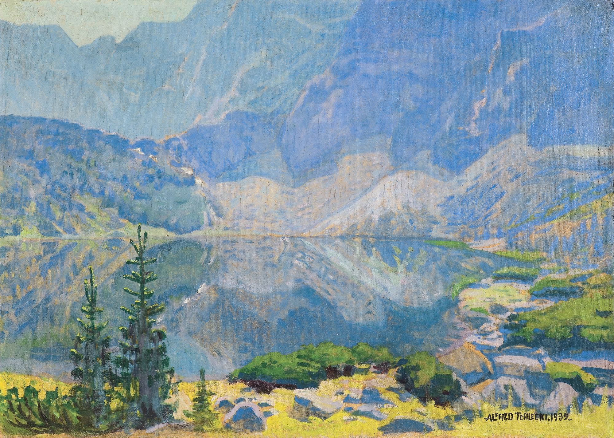 Alfred Terlecki (Warszawa 1883 - Kraków 1973) w latach 1906-1917 studiował pod kierunkiem Leona Wyczółkowskiego i Józefa Mehoffera w Akademii Sztuk Pięknych w Krakowie. W okresie 1915-1919 uczył rysunku w szkołach w Zakopanem. Należał do Grupy Zachęta i do ZPAP. Malował przede wszystkim dekoracyjnie stylizowane pejzaże tatrzańskie, w tym wiele z otoczenia Morskiego Oka czy Hali Gąsienicowej. Malował tez widoki Krakowa, portrety i wnętrza. Zajmował się drzeworytem. Prace artysty znajdują się, m.in. w Muzeach Narodowych Warszawy i Krakowa; ale największy ich zespół posiada Muzeum Tatrzańskie w Zakopanem.