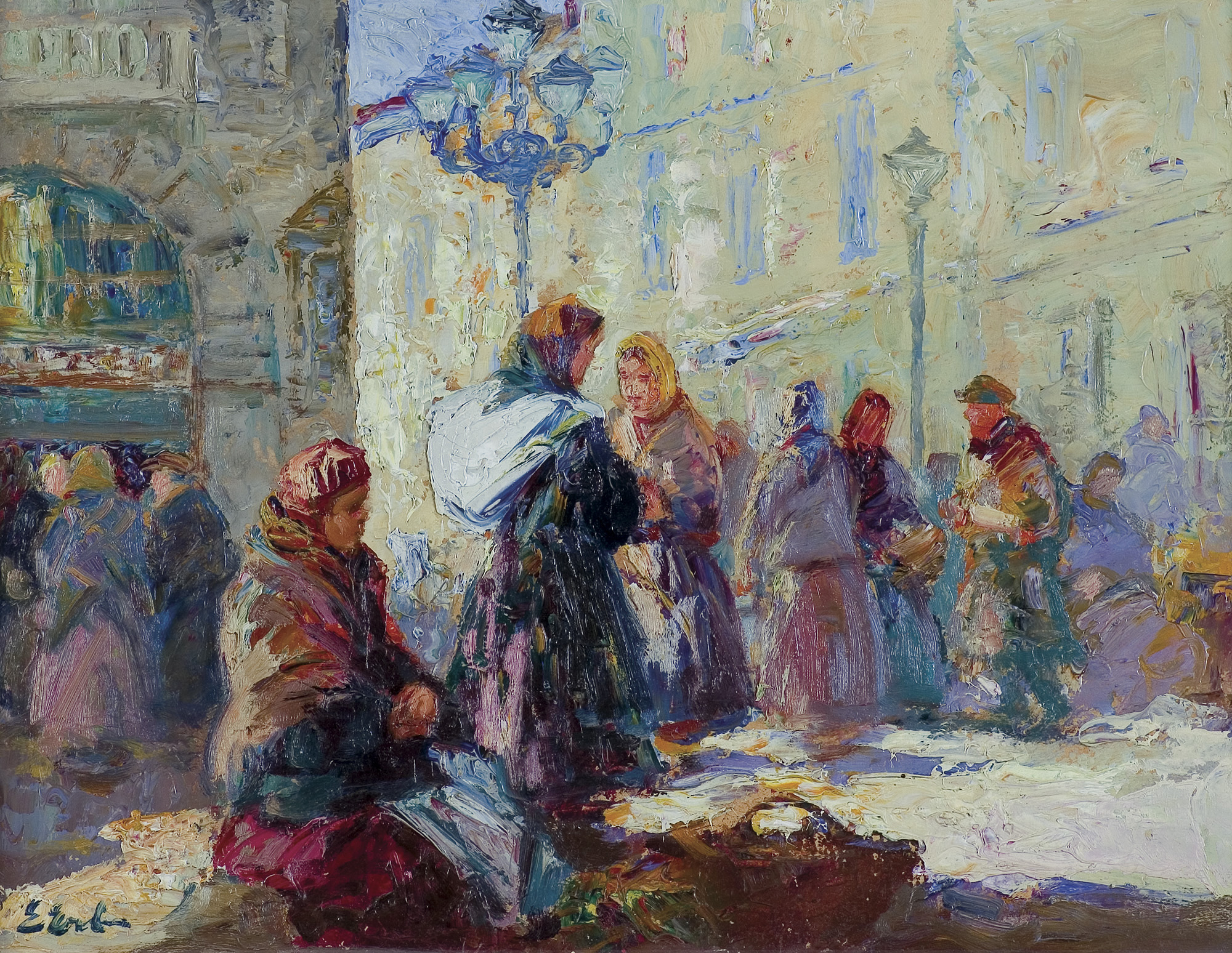 Erno Erb (Lwów 1878 lub 1890 - Lwów 1943) był artystą związanym ze środowiskiem lwowskim; mieszkał we Lwowie i w Truskawcu. Malował motywy miejskie, sceny rodzajowe, targowiska, charakterystyczne typy ukraińskich chłopów i Żydów, pejzaże i martwe natury. Posługiwał się pastelami, akwarelą i farbami olejnymi. Jego olejne obrazy, odznaczające się bogatą fakturą grubo kładzionej farby, bywały porównywane z pracami niemieckiego malarza Maxa Liebermana. Artysta wielokrotnie wystawiał w Towarzystwie Przyjaciół Sztuk Pięknych we Lwowie i w Krakowie oraz w warszawskiej Zachęcie. W roku 1929 brał udział w Powszechnej Wystawie Krajowej w Poznaniu, a w roku 1932 w Wystawie Sztuki Polskiej w Buffalo.