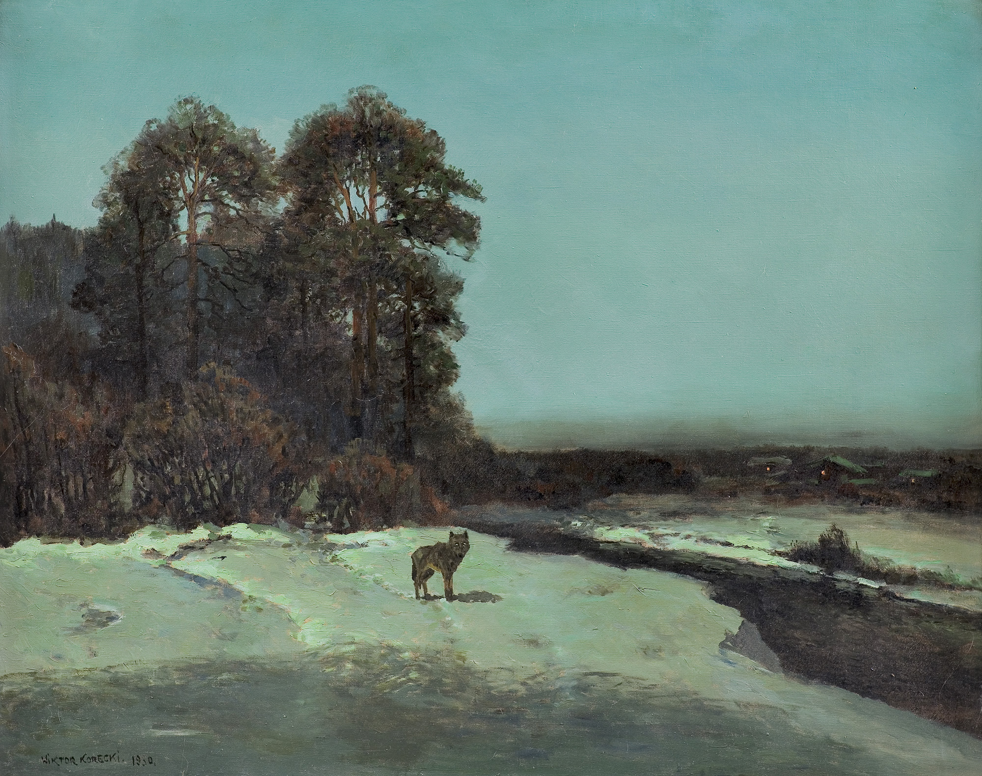 Wiktor Korecki (Kamieniec Podolski 1890 - Komorów k. Warszawy 1980) - malarz pejzażysta - gimnazjum ukończył w Kijowie, tam też studiował w Szkole Rysunkowej Aleksandra Muraszki. Po studiach wrócił do Kamieńca Podolskiego, skąd w roku 1921 wyjechał do Warszawy. Tu miał pracownię na rogu ulic Tamki i Cichej. Niestety zgromadzone tam obrazy spłonęły w czasie powstania 1944 roku. Po powstaniu artysta przebywał w obozie w Pruszkowie skąd trafił do obozu pracy w Lipsku. Do kraju powrócił w roku 1946 i zamieszkał w Komorowie pod Warszawą, a później w Milanówku. Jego nastrojowe krajobrazy emanujące spokojem i pogodą cieszyły się zawsze dużą popularnością. Korecki najczęściej malował pejzaże zimowe z motywem leśnej drogi i strumienia wijącego się wśród śniegów, a obok nich także wiosenne, letnie czy jesienne widoki z Mazowsza.