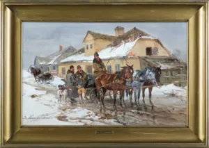 Czesław Wasilewski (ok. 1875 - Warszawa/ Łódź 1946?47) to popularny w okresie międzywojennym warszawski malarz, autor obrazów inspirowanych płótnami Kossaka, Brandta, Chełmońskiego, Wierusza-Kowalskiego czy Fałata. Był samoukiem; wprawdzie w 1911 zapisał się do warszawskiej Szkoły Sztuk Pięknych, ale o jego studiach nic bliższego nie wiadomo. Być może uczęszczał tam (1913-1917) do pracowni Wojciecha Kossaka, dla którego później, na początku lat dwudziestych, przygotowywał podmalówki do obrazów. Uczestniczył w wystawie w Lublinie (1922), wystawiał na Salonach warszawskiej Zachęty (1925,1926, 1927), w Katowicach (1926), Częstochowie (1927), Gdyni (1929), Kaliszu (1931), Poznaniu (1928, 1931). Malował przede wszystkim liczne zaprzęgi, sanny, wyjazdy na polowania, wypadki w podróży, ułanów na patrolu, łosie, sarny i dziki w lesie. Tworzył także nastrojowe pejzaże, wyraźnie inspirowane malarstwem J. Chełmońskiego Rzadziej malował także kwiaty i martwe natury. Utożsamiany z malarzem o nazwisku „Zygmuntowicz”, którego prace pojawiały się na rynku sztuki od trzydziestych lat XX wieku. Stawiany przed tym nazwiskiem inicjał I. lub F., sugerować może imię Ignacy lub Franciszek. Sylwetkę malarza bliżej omówił S. Bołdok w artykule Malarz o dwóch nazwiskach (Art and Business 1992, nr 7-8, s. 48-49).