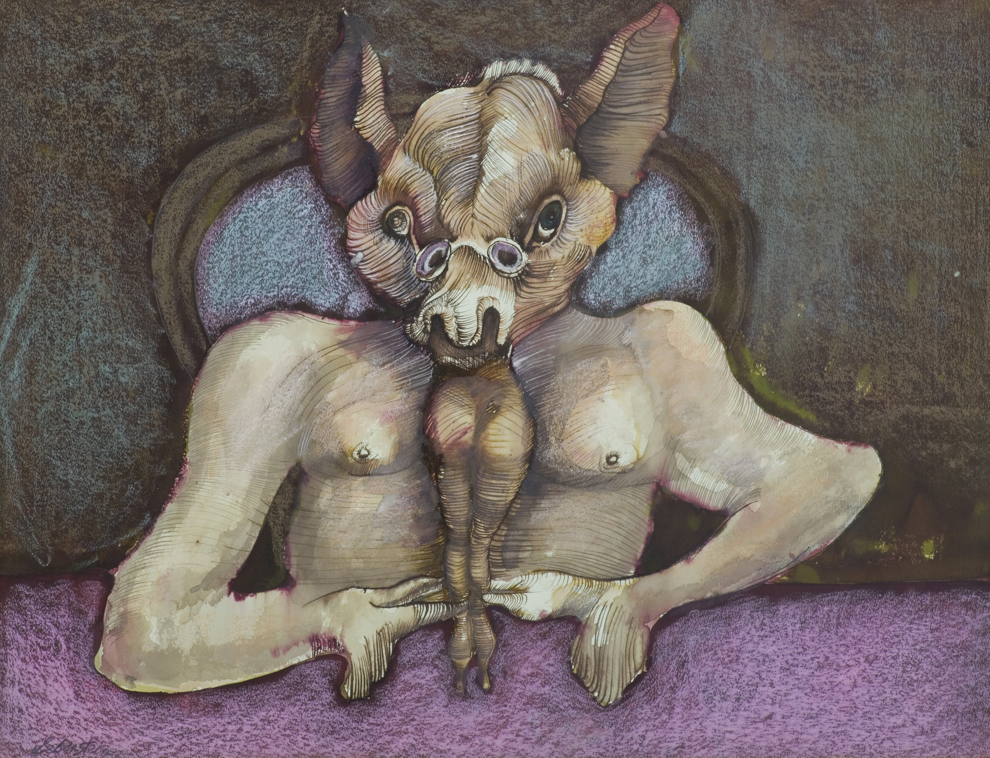 Jan Lebenstein (Brześć Litewski 1930 - Kraków 1999) w latach 1948-1954 studiował malarstwo w ASP w Warszawie pod kierunkiem prof. Eugeniusza Eibischa i Artura Nachta-Samborskiego. W 1955 wziął udział w wystawie w warszawskim Arsenale. Zaprzyjaźniony w czasie studiów z Mironem Białoszewskim, swą pierwszą wystawę indywidualną pokazał w 1956 w Teatrze na Tarczyńskiej. W 1959 zdobył Grand Prix de la Ville de Paris na I Biennale Młodych w Paryżu i w tym roku przeniósł się na stałe do Paryża. Po seriach "figur kreślonych" (na papierze milimetrowym) i "figur hieratycznych" z lat 1955-1958 maluje cykl "figur osiowych" (1958-1962), które wystawia w Paryżu i USA. Równolegle w 1960 zaczyna rysowane "karnety", rodzaj dziennika, który w przyszłości dostarczy motywów wykorzystanych w obrazach. W latach 1964-1965 maluje "Bestiarium", cykl fakturowych, archaizowanych stworów przypominających prehistoryczne wykopaliska. Bezpośrednio po nich wprowadza do swych obrazów postaci ludzkie i fantastyczne, odgrywające sceny ni to mitologiczne, ni to ze snu, często przesycone erotyką. W 1970 projektuje witraże dla Centre du Dialogue w Paryżu. W W 1971 otrzymuje obywatelstwo francuskie 1974 powstają gwasze inspirowane Folwarkiem zwierzęcym George'a Orwella. W latach 1976-1989 tworzy wyłącznie w technice gwaszu i pastelu, podejmując tematykę mitologiczną i zaczerpniętą z Biblii: cykle ilustracji do Księgi Hioba (wyd. 1979) i do Apokalipsy (wyd. 1986) w nowych przekładach Czesława Miłosza. W 1989 powraca do malarstwa olejnego (cykl "Pergamon"). Artysta otrzymał m. in. nagrodę Fundacji im. Alfreda Jurzykowskiego w 1976, Nagrodę Muzeum Archidiecezji Warszawskiej w 1985, Nagrodę im. Jana Cybisa w 1987.