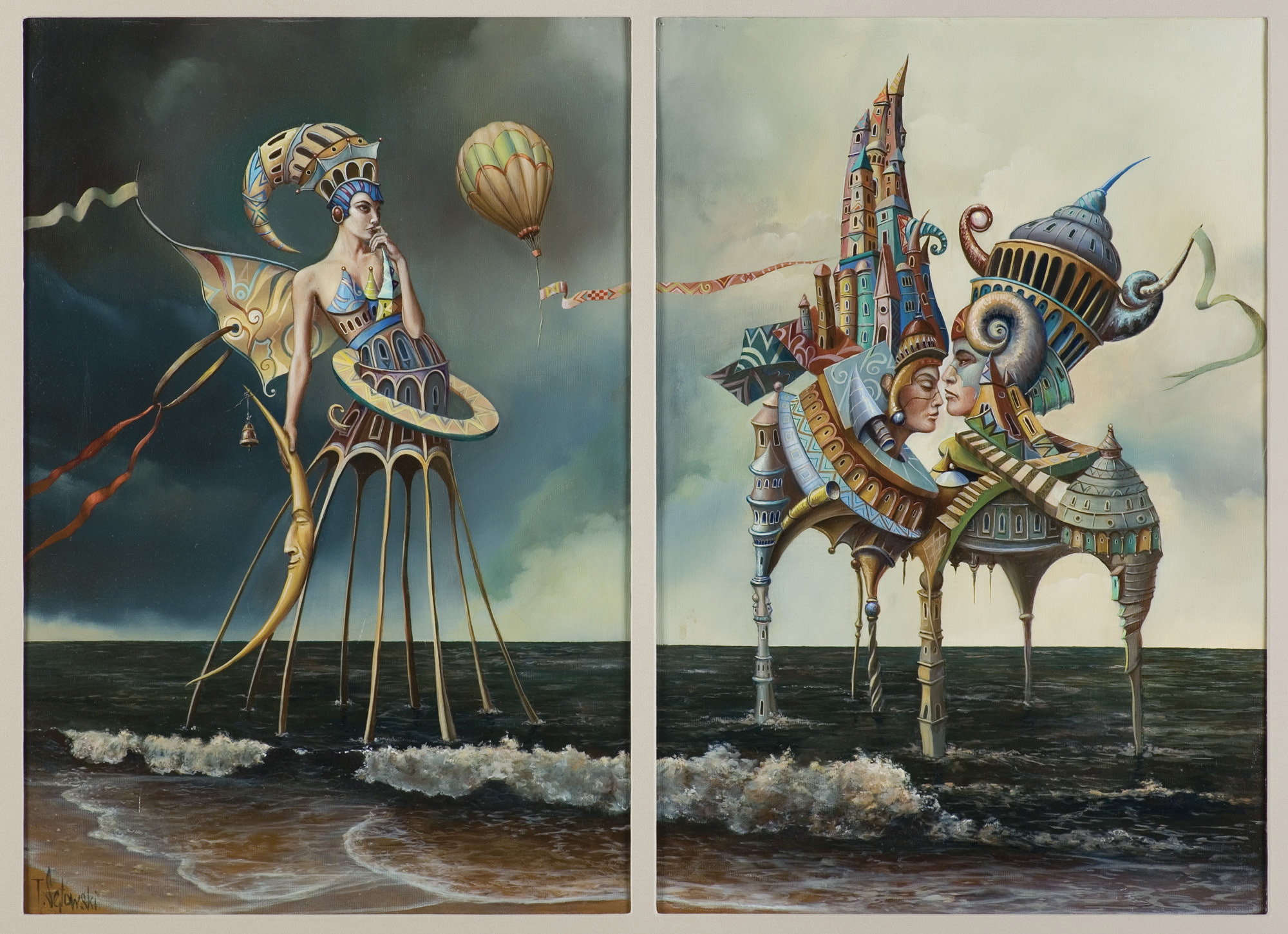 Tomasz Sętowski (Częstochowa 14 VI 1961, mieszka w Częstochowie) ukończył studia na kierunku artystycznym Wyższej Szkoły Pedagogicznej w Częstochowie, jednak sam twierdzi, że studia dały mu tylko teoretyczne przygotowanie i jest malarskim samoukiem. Od końca lat 80. pokazywał swe prace na wystawach indywidualnych i zbiorowych, zrazu za granicą (Niemcy, Francja), a następnie Polsce. W 1991 został członkiem ZPAP. Po indywidualnym debiucie w kraju (wystawa w BWA, Częstochowa 1994), jego prace zostały włączone do wystawy objazdowej „Surrealiści polscy” krążącej po Polsce w latach 1995-97. W 1998 zajęła się jego twórczością nowojorska galeria Stricoff Fine Art Ltd. Reprezentuje popularny u publiczności nurt tzw. realizmu magicznego. Buduje swe kompozycje zazwyczaj strefowo, umieszczając w nich postaci w fantastycznych, kolorowych strojach. Z reguły wykorzystuje w swych obrazach efekt „obrazu w obrazie” (np. zestawienia na jednym planie postaci różnej skali, pojawiające się niemal w każdym obrazie nakrycia głowy w formie gotyckich zamków i wież). Postaci malowane są z naciskiem na dekoracyjność, kaligraficznie i płasko, co zbliża obrazy Sętowskiego do ilustracji i podnosi wrażenie obcowania ze światem baśniowych wizji.