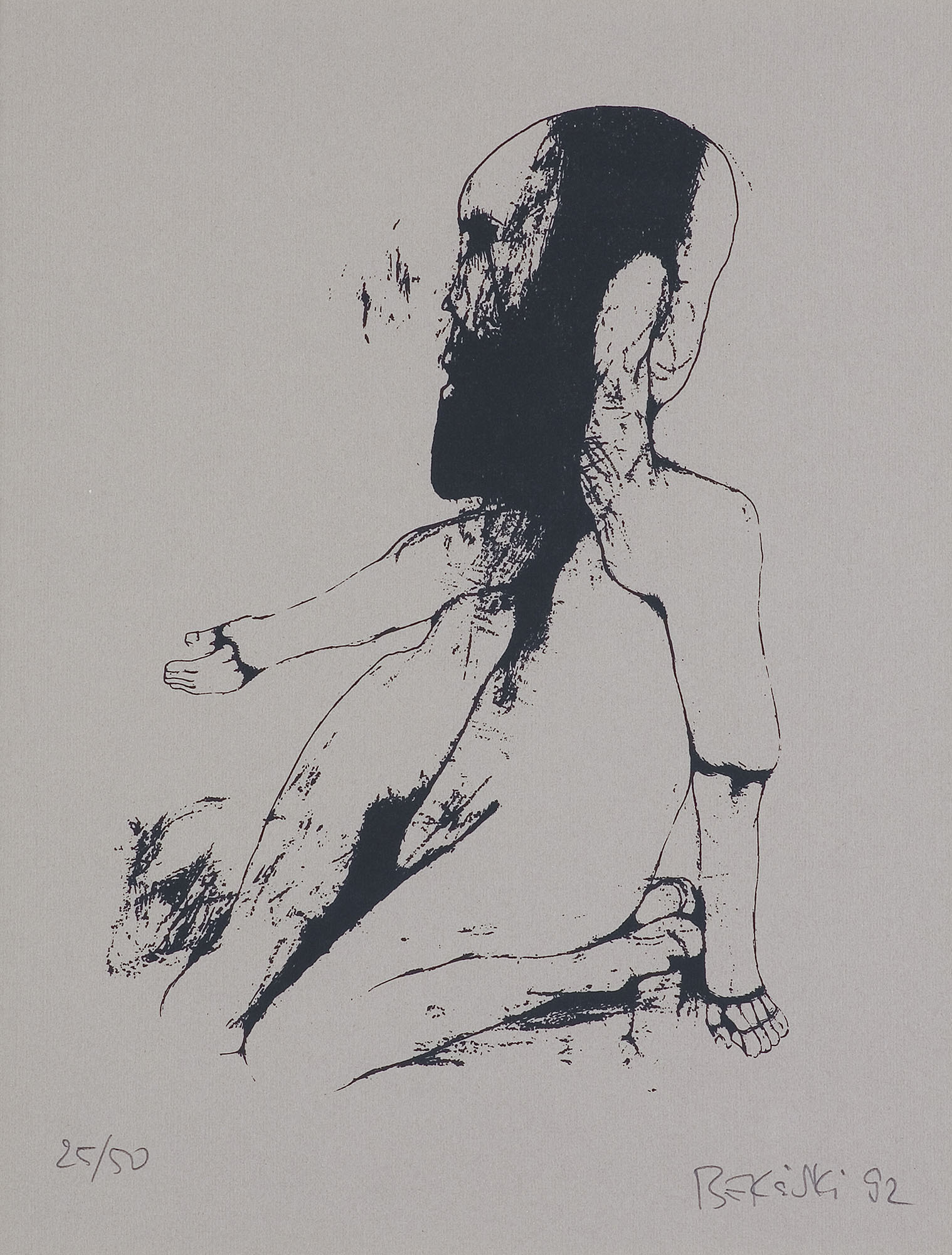 Zdzisław Beksiński (Sanok 24 II 1929 - Warszawa 21 II 2005) studiował w latach 1947-1952 na Wydziale Architektury Politechniki Krakowskiej. Był artystą samoukiem, który osiągnął niekwestionowaną pozycję w polskiej sztuce współczesnej, potwierdzoną obecnością jego prac na prestiżowych wystawach i w kolekcjach muzealnych. Początkowo zajmował się fotografią, którą interesował się od lat studenckich, po 1956 zyskując uznanie jako twórca fotogramów o estetyce opartej o efekty fakturowe. W latach 1958-1962 tworzył abstrakcyjne obrazy-reliefy o bogatej fakturze, głównie metalowe, będące odmianą malarstwa materii. Pod koniec tego okresu powstawały ażurowe formy o kształtach figur i pełnoplastyczne rzeźby w metalu. Kolejnym etapem jego twórczości były lata 1962-1974, kiedy poświęcał się głównie rysunkowi. W latach 60. rysował piórkiem i tuszem figuralne kompozycje odznaczające się karykaturalną deformacją postaci. Od końca lat 60. tworzył rysunki węglem i kredkami, będące monochromatyczną odmianą jego równoległej twórczości malarskiej. Od 1974 zajmował się niemal niepodzielnie malarstwem. Jego charakterystyczny styl bazował na perfekcji technicznej, której towarzyszyła niezwykłość wizji. Malował świat po katastrofie, naznaczony piętnem śmierci i rozpadu. Jego obrazy zaludniają postaci i stwory o ludzkich wprawdzie bądź zwierzęcych kształtach, lecz o cechach fantomów, automatów lub rozpadających się trucheł. Artysta nie nadawał swym obrazom i rysunkom tytułów (poza porządkującymi symbolami), akcentując w ten sposób swój brak zainteresowania dla literackiej strony przedstawień. Sam mówił, że malując całkowicie poddaje się wizji, „fotografuje“ ją. W ostatnich latach włączył do swego warsztatu artystycznego elektroniczne techniki generowania obrazu, które wykorzystywał do tworzenia komputerowych fotomontaży. Sztuka Beksińskiego, wielokrotnie wystawiana i omawiana, budzi skrajne emocje wśród znawców i publiczności.