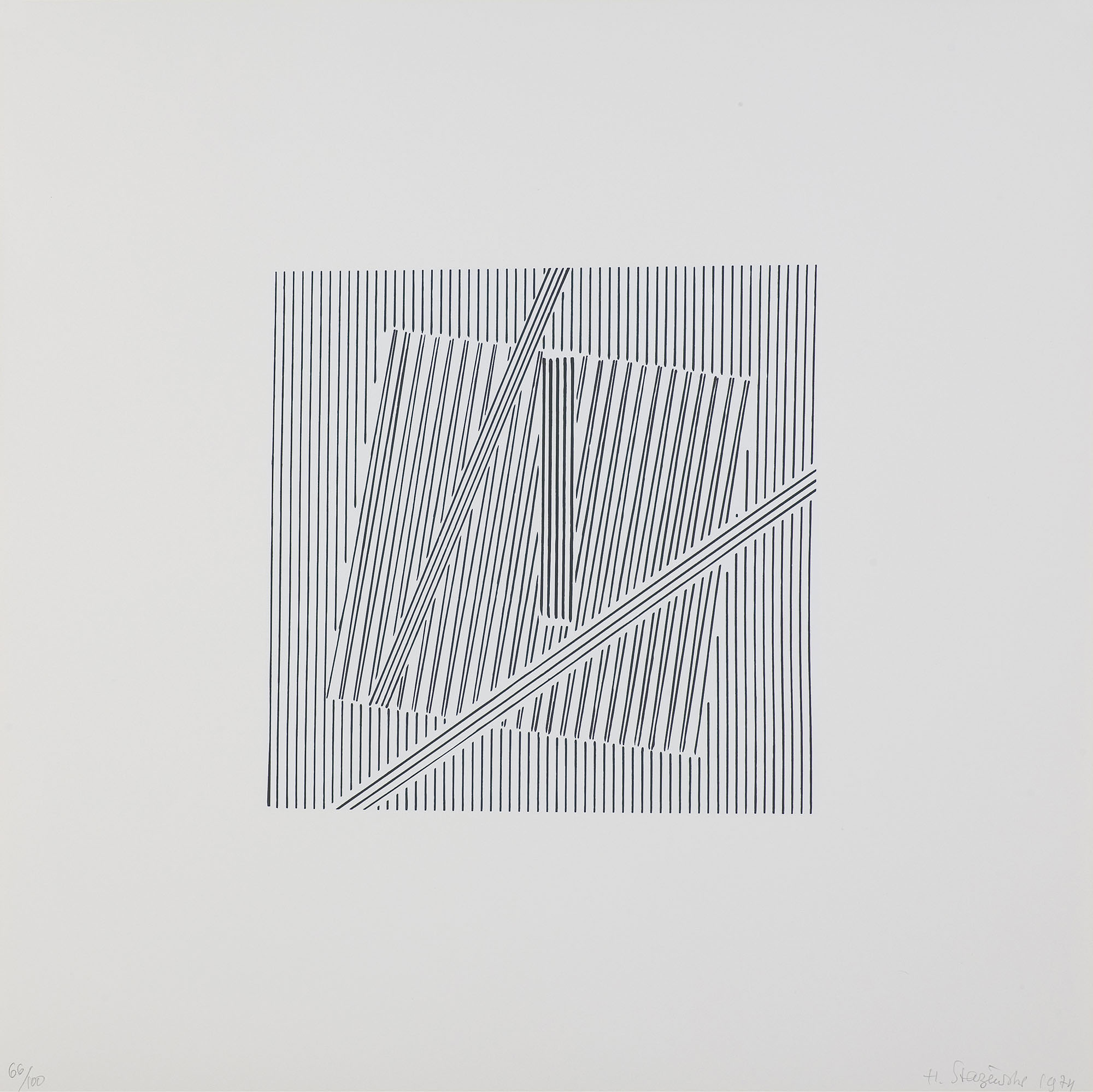 Henryk Stażewski (Warszawa 9 I 1894 - Warszawa 10 VI 1988) studiował w Szkole Sztuk Pięknych w Warszawie w latach 1913-1920. W początkach kariery malował martwe natury. Przejściowo wystawiał z ugrupowaniem „Formiści” (1922). Wziął też udział w Wystawie Nowej Sztuki w Wilnie w 1923. O tego czasu tworzył pod wpływem konstruktywizmu. Obok kompozycji malarskich trudnił się grafiką książkową, projektował wnętrza, sprzęty, a także scenografie – były to w większości prace teoretyczne i studyjne. Polskie i międzyna-rodowe ugrupowania awangardy, z którymi wystawiał i współpracował jako publicysta, to kolejno: „Blok” (1924-1926), „Praesens” (1926-1930), „Cercle et Carré” (1929-1931), „Abstraction-Création” (1931-1939), „a. r.” (1932-1939). Należał też do Koła Artystów Grafików Reklamowych (1933-1939). W 1930 był współorganizatorem zbiórki dzieł artystów międzynarodowej awangardy przeznaczonych dla muzeum łódzkiego (obecnie w Muzeum Sztuki w Łodzi). Po II wojnie mieszkał i działał w Warszawie. W latach 40. i 50. podejmował próby dostosowania się do postulatów sztuki figuratywnej. Z tego okresu pochodzą rysunkowe i malarskie kompozycje o tematyce pracy, budowy, a także projekty monumentalne. Po 1956, uznawany powszechnie za patrona polskiej awangardy, uprawiał już wyłącznie abstrakcję o konstruktywistycznym rodowodzie. Tworzył cykle prac, będących studiami płaszczyzn, linii, kolorów w różnych układach względem siebie. Przy pozorach chłodnej perfekcji umiał nasycić je emocją bezpośredniego dotknięcia, śladu ręki. Obok malarstwa i form pochodnych, jak collages, reliefy, multiple, tworzył formy przestrzenne i grafikę (autoryzował serigraficzne repliki swoich prac). Był laureatem wielu nagród i odznaczeń krajowych i zagranicznych, w tym Nagrody Herdera, Wiedeń 1972.