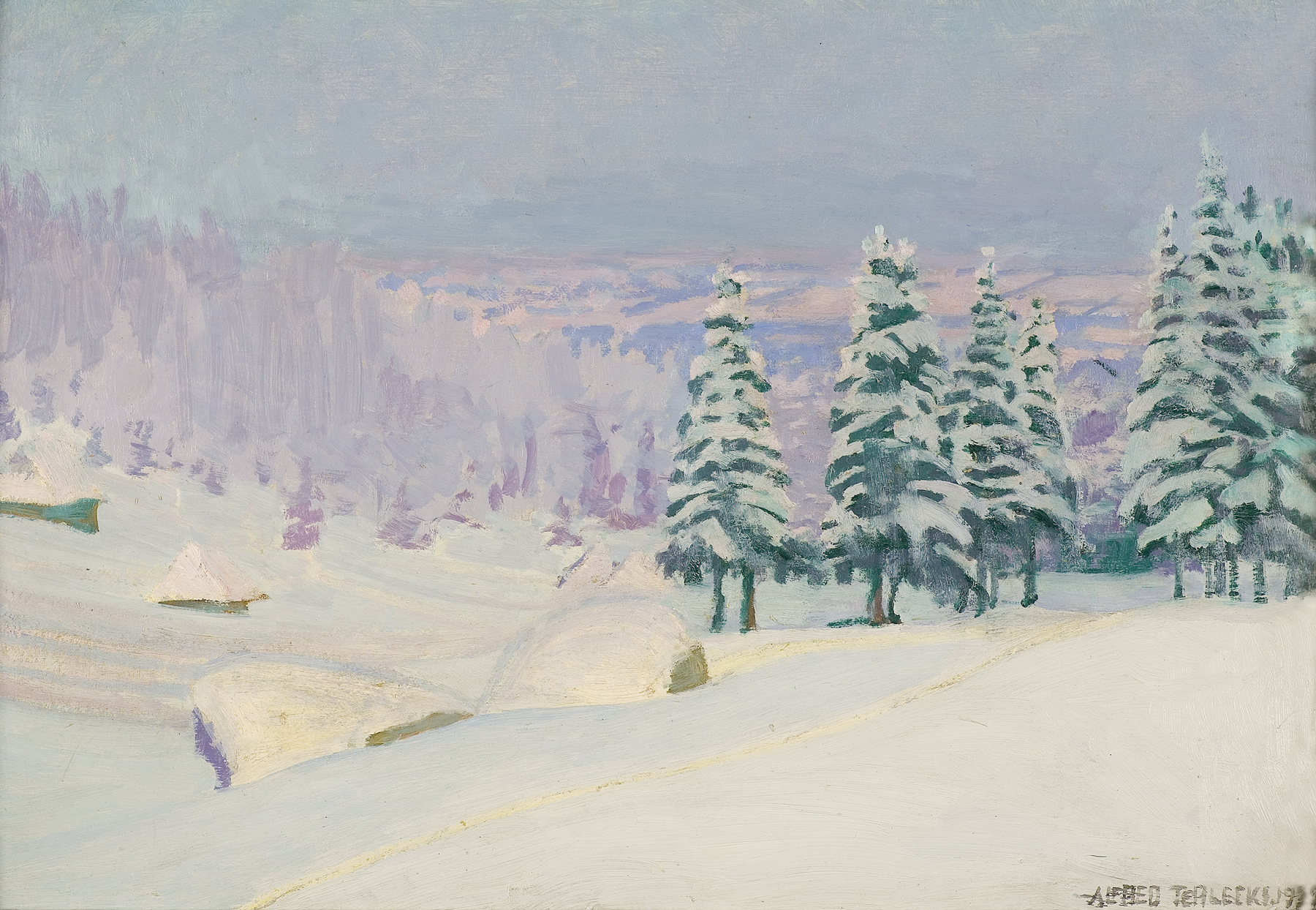 Alfred Terlecki (Warszawa 1883 - Kraków 1973) w latach 1906-1917 studiował pod kierunkiem Leona Wyczółkowskiego i Józefa Mehoffera w Akademii Sztuk Pięknych w Krakowie. W okresie 1915-1919 uczył rysunku w szkołach w Zakopanem. Należał do Grupy Zachęta i do ZPAP. Malował przede wszystkim dekoracyjnie stylizowane pejzaże tatrzańskie, w tym wiele z otoczenia Morskiego Oka czy Hali Gąsienicowej. Malował tez widoki Krakowa, portrety i wnętrza. Zajmował się drzeworytem. Prace artysty znajdują się, m.in. w Muzeach Narodowych Warszawy i Krakowa; ale największy ich zespół posiada Muzeum Tatrzańskie w Zakopanem.