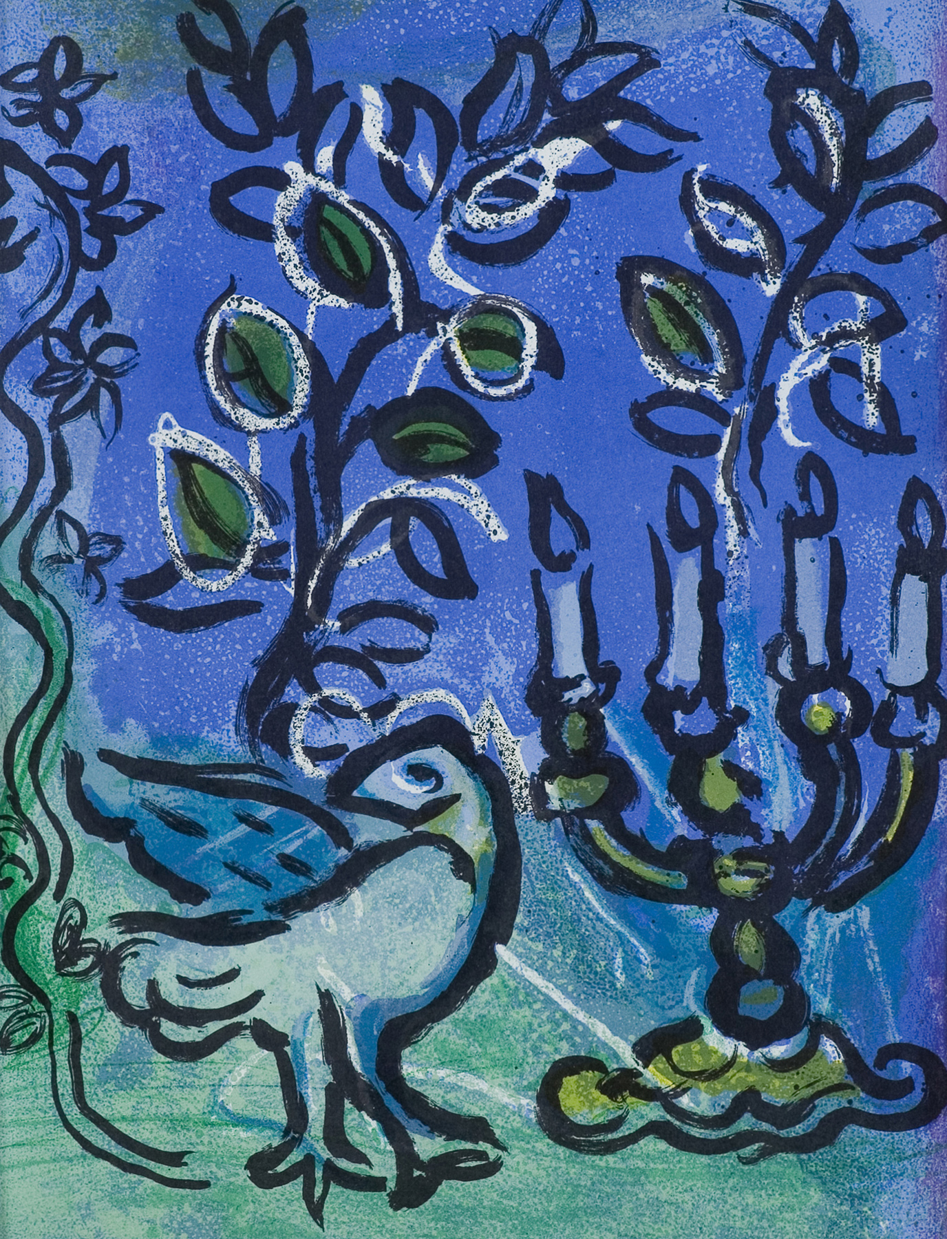 Marc Chagall uczył się rysunku u witebskiego malarza nazwiskiem Juda Pen, następnie od 1907 studiował w Akademii petersburskiej. W 1910 wyjechał na stypendium do Paryża. Zamieszkał w La Ruche na Montparnassie, wszedł do kręgu artystów, wśród których byli m.in. Modigliani, Soutine, Delaunay. W 1914 wrócił do Witebska, w 1915 poślubił Bellę (zm. 1944), muzę i bohaterkę wielu obrazów. W latach 1915-1917 mieszkał w Sankt Petersburgu, gdzie zastała go rewolucja. Mianowany komisarzem sztuk pięknych na obszar Witebska, założył tam i prowadził w latach 1918-1919 szkołę artystyczną, której profesorami byli m.in. Kazimierz Malewicz i El Lissitzky. W 1919 przeniósł się do Moskwy, gdzie do 1922 był kierownikiem artystycznym Państwowego Teatru Żydowskiego. W 1923 ostatecznie opuścił Rosję, osiedlając się w Paryżu. We Francji spędził resztę życia, z przerwą w latach 1941-1947, kiedy to schronił się w Nowym Jorku. Jego styl, wykształcony w młodości niezależnie od równoległych kierunków w sztuce, pozostał w ciągu życia artysty mało zmieniony. Wyobraźnia i sposób obrazowania Chagalla, zbliżone do sztuki naiwnej, wpisały się najsilniej w nurt surrealizmu, stając się jego znaczącym rozszerzeniem. Chagall łączył poetyckość i cudowność swych fantazji z rozwiniętym warsztatem malarza-kolorysty. Był też utalentowanym i płodnym grafikiem (cykle ilustracji do "Martwych dusz" Gogola, 1923-1927, "Bajek" La Fontaine’a, 1927-1930, Biblii, 1931-1955 – każdy cykl liczył ponad 100 plansz w technikach metalowych). Zajmował się scenografią (projekty dla Metropolitan Opera w Nowym Jorku, 1945, Opery w Paryżu, 1958), malarstwem monumentalnym (plafon w Operze paryskiej, 1963-1964), projektował witraże, dekoracje ceramiczne.