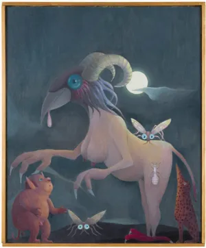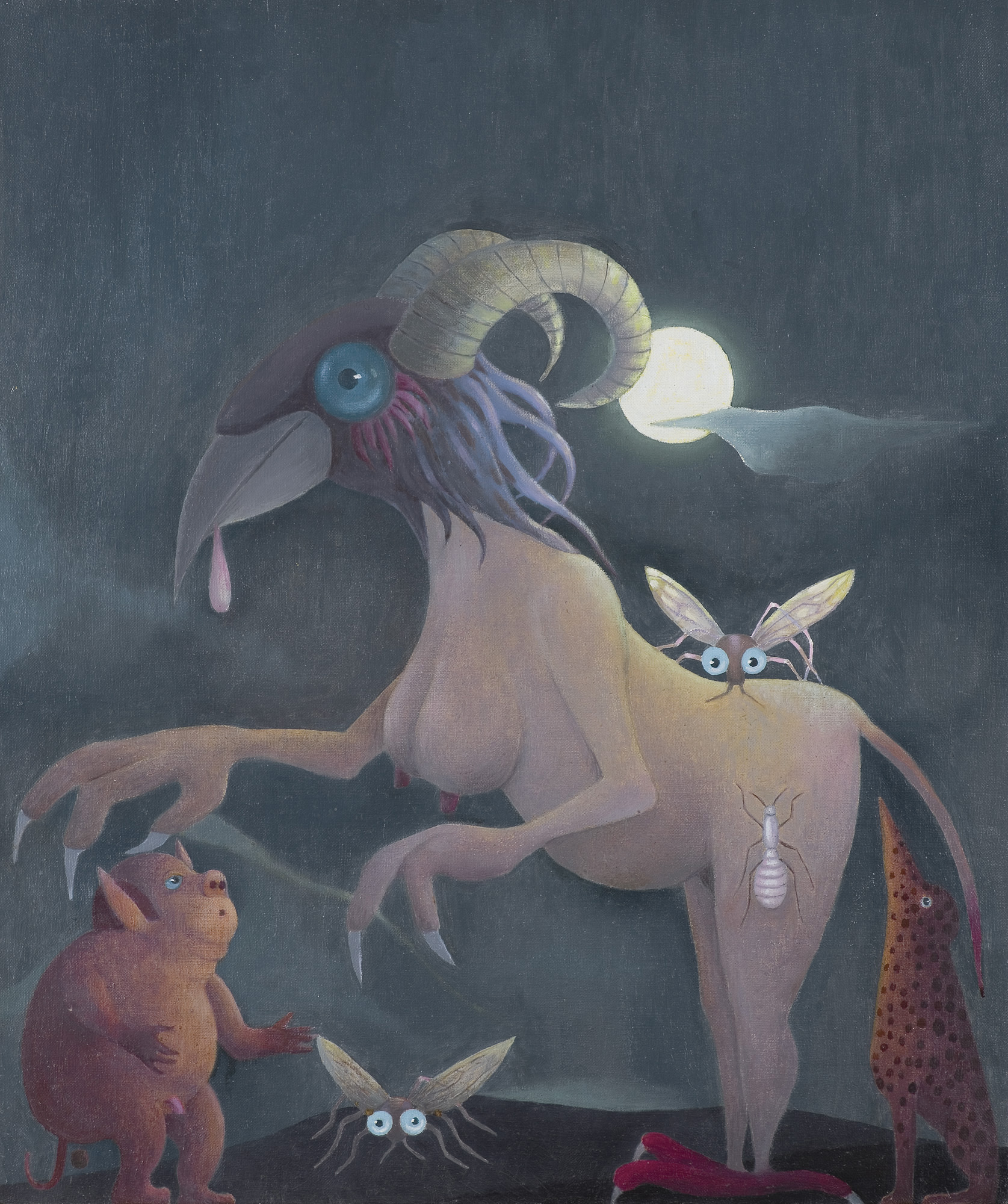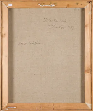 sygn. na odwr. na płótnie p.g.: KMikulski | Kraków 1982, śr. l.: „Noc na Łysej Górze“ na g. listwie krosna: 60 x 72 [przekreślone] 72 x 60 s 11 [w kółku]