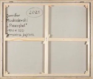 Jarosław Modzelewski (Warszawa 1955, mieszka w Warszawie) studiował malarstwo w ASP w Warszawie w latach 1975-1980, uzyskując dyplom w pracowni Stefana Gierowskiego. Od 1982 pracuje jako pedagog na macierzystym wydziale. W 1982 był współzałożycielem „Gruppy”, najważniejszego ugrupowania nurtu nowej ekspresji lat 80., działającego do 1992. W latach 1991-1996 wspólnie z Markiem Sobczykiem prowadził prywatną Szkołę Sztuki w Warszawie. Od wielu lat współpracuje z Galerią Zderzak w Krakowie. W początkowym okresie twórczości skłaniał się ku abstrakcji, wykorzystywał uproszczone znaki i emblematy oraz sylwetki odbite z szablonu. W 1985 namalował cykl oparty na ilustracjach do podręczników języka rosyjskiego, obrazujący proste czynności, których czasownikowe określenia stanowią tytuły prac. W 1986-1989 powstawały obrazy utrzymane w konwencji realistycznej, jednak zarazem o surrealnej atmosferze uzyskiwanej różnymi metodami, np. przez dublowanie figur, ukazywanie postaci w sytuacji niepewności czy zagrożenia, zabiegi z przestrzenią. W grupie obrazów z 1988 artysta rezygnuje z postaci ludzkiej na rzecz wyjątkowego nasycenia emocją samej przestrzeni pejzaży i wnętrz. Około 1990 wraca do kompozycji akcentujących czynności wykonywane przez postaci, które często umieszczone są w pustej, zaledwie zasugerowanej, acz dominującej przestrzeni. Odrealnienia i monumentalności dodaje tym obrazom płaskie i rozległe kładzenie koloru.