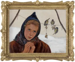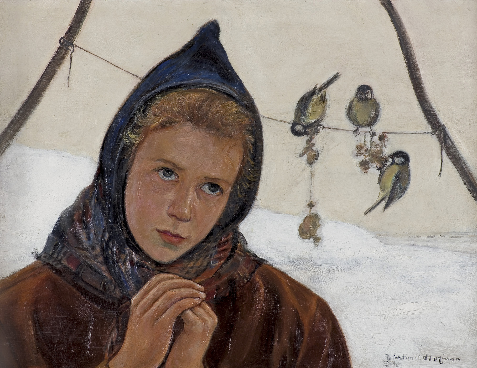 Wlastimil Hofman / Vlastimil Hofmann (Praga 1881 - Szklarska Poręba 1970) studiował w krakowskiej Szkole Sztuk Pięknych - początkowo pod kierunkiem Floriana Cynka, później także u Jana Stanisławskiego, Leona Wyczółkowskiego i Jacka Malczewskiego. W latach 1899-1902 uczył się jeszcze u Jeana Léona Gérôme’a w paryskiej École des Beaux-Arts. W czasie I wojny światowej przebywał w Pradze i w Paryżu; od 1920 stale mieszkał w Krakowie. Dużo wystawiał; należał do wielu stowarzyszeń twórczych - był współzałożycielem „Grupy Pięciu” (1905) i „Grupy Zero” (1908), członkiem Związku Artystów Czeskich „Manes”, a od 1911 członkiem Tow. Artystów Polskich „Sztuka”. W czasie II wojny światowej poprzez ZSRR i Turcję przedostał się do Jerozolimy, skąd w roku 1946 wrócił do Krakowa. Od roku 1947 stale mieszkał w Szklarskiej Porębie. Hofman malował przede wszystkim fantastyczno-symboliczne kompozycje o motywach ludowych oraz sceny rodzajowe, portrety i pejzaże. Jego obrazy mimo bliskich analogii i powiązań ze sztuką Malczewskiego odznaczają się zawsze indywidualnym charakterem, stylem i nastrojem.