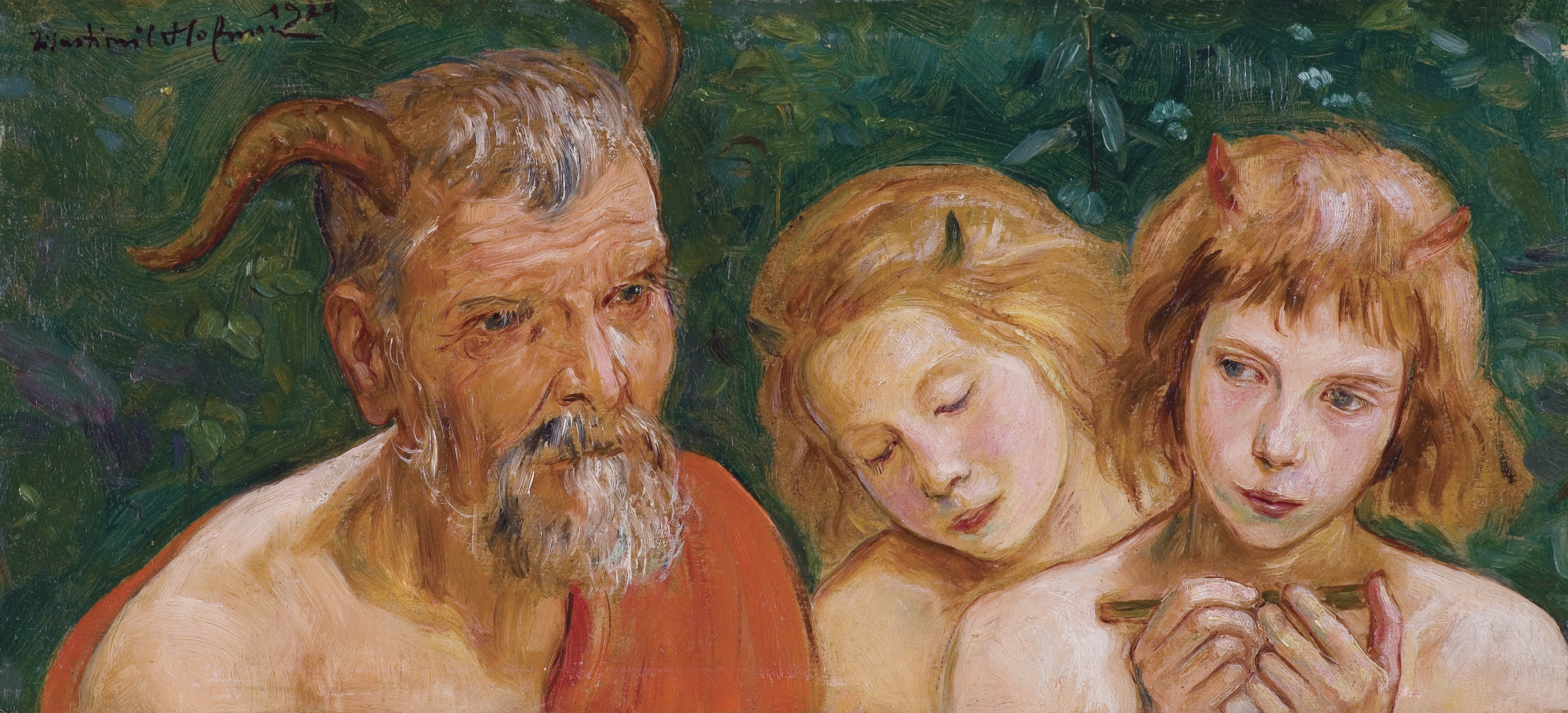 Wlastimil Hofman / Vlastimil Hofmann (Praga 1881 - Szklarska Poręba 1970) studiował w krakowskiej Szkole Sztuk Pięknych - początkowo pod kierunkiem Floriana Cynka, później także u Jana Stanisławskiego, Leona Wyczółkowskiego i Jacka Malczewskiego. W latach 1899-1902 uczył się jeszcze u Jeana Léona Gérôme’a w paryskiej École des Beaux-Arts. W czasie I wojny światowej przebywał w Pradze i w Paryżu; od 1920 stale mieszkał w Krakowie. Dużo wystawiał; należał do wielu stowarzyszeń twórczych - był współzałożycielem „Grupy Pięciu” (1905) i „Grupy Zero” (1908), członkiem Związku Artystów Czeskich „Manes”, a od 1911 członkiem Tow. Artystów Polskich „Sztuka”. W czasie II wojny światowej poprzez ZSRR i Turcję przedostał się do Jerozolimy, skąd w roku 1946 wrócił do Krakowa. Od roku 1947 stale mieszkał w Szklarskiej Porębie. Hofman malował przede wszystkim fantastyczno-symboliczne kompozycje o motywach ludowych oraz sceny rodzajowe, portrety i pejzaże. Jego obrazy mimo bliskich analogii i powiązań ze sztuką Malczewskiego odznaczają się zawsze indywidualnym charakterem, stylem i nastrojem.