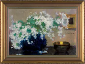 Alfons Karpiński (Rozwadów, dziś dzielnica Stalowej Woli 1875 - Kraków 1961) w latach 1891-1899 studiował w krakowskiej Szkole Sztuk Pięknych pod kierunkiem Floriana Cynka, Izydora Jabłońskiego, Władysława Łuszczkiewicza i Leona Wyczółkowskiego, a następnie kształcił się jeszcze u Antona Ažbégo w Monachium (1903), u Kazimierza Pochwalskiego w Wiedniu, a od 1907 także w Paryżu. Podróżował do Włoch i Londynu. Stale mieszkał w Krakowie; związany z tamtejszym środowiskiem skupionym wokół „Zielonego Balonika” projektował dekoracje do przedstawień kabaretu. Należał do Tow. Artystów Polskich „Sztuka”, grupy „Zero”, był członkiem wiedeńskiego stowarzyszenia „Secesja” i krakowskiego TPSP. Uczestniczył w wielu wystawach w kraju i za granicą. W czasie I wojny światowej służył w armii austriackiej. Na bogatą twórczość artysty składają się wczesne sceny rodzajowe z podkrakowskiej wsi, pejzaże i portrety, wśród nich zwłaszcza portrety kobiece, które przyniosły mu szczególną popularność. Z czasem głównym – obok portretu – tematem jego obrazów stały się martwe natury z kwiatami, dekoracyjne kompozycje o stonowanej gamie barwnej. Artysta zajmował się także grafiką i ilustratorstwem.