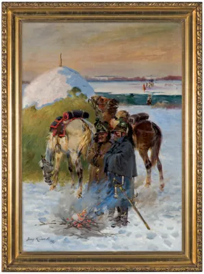 Jerzy Kossak (Kraków 1886 - Kraków 1955)- syn Wojciecha, wnuk Juliusza Kossaków - od wczesnego dzieciństwa malował pod kierunkiem ojca i dziadka. Kontynuator i naśladowca ich sztuki tworzył sceny batalistyczne, historyczne i rodzajowe z wszechobecnym motywem konia. Malował obrazy z powstania listopadowego, wojen napoleońskich oraz wiele scen z wojny 1920 roku. Najbardziej znaną jego kompozycją tego rodzaju był Cud nad Wisłą. Malował też liczne Pogonie i Pościgi ułanów za kozakami, Napady wilków, Polowania i Wesela. Tematyka tych prac sprawia, że stale cieszą się zainteresowaniem zbieraczy i publiczności, zawsze tłumnie odwiedzającej wystawy malarstwa Kossaków.