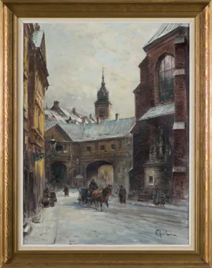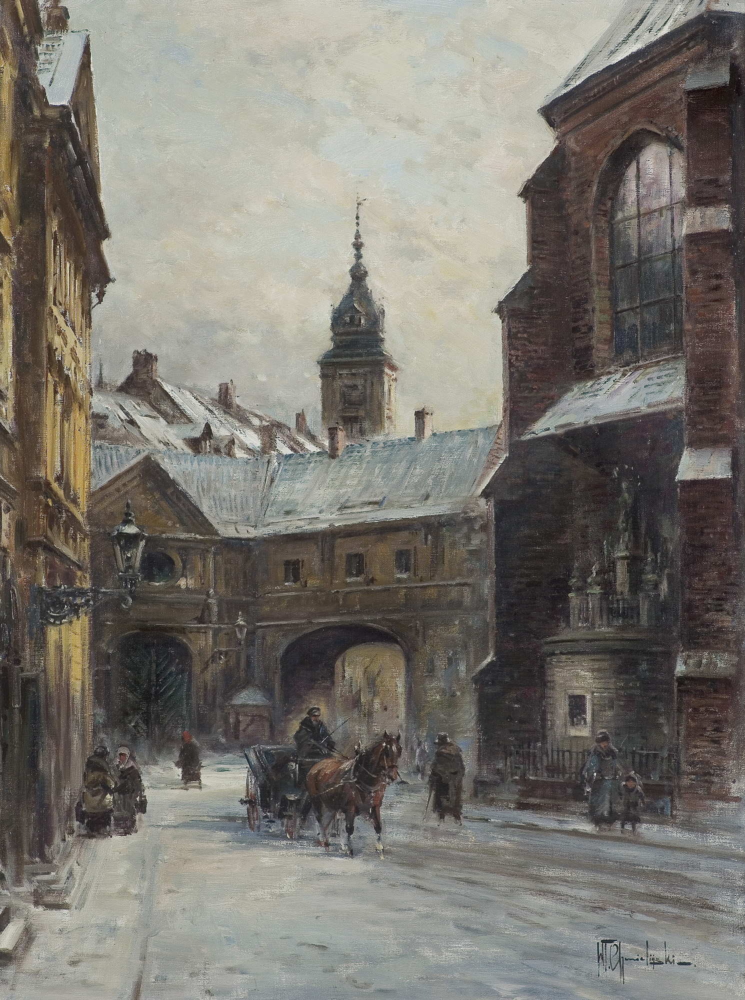 Władysław Chmieliński (Warszawa 1911 - Warszawa 1979) był malarzem związanym z Warszawą, gdzie stale mieszkał i pracował. W latach 1926-1931 studiował w warszawskiej Miejskiej Szkole Sztuk Zdobniczych i Malarstwa (dawna Klasa Rysunkowa). Wiodącym tematem jego obrazów były widoki miejskie, malowane olejno i akwarelą. W latach 1935-1938 stworzył cykl akwarel przedstawiających obiekty polskiej architektury; wśród nich, widoki Sandomierza, Krakowa, Kazimierza nad Wisłą, a także wnętrza zabytkowych kościołów czy pałaców, m.in. Zamku Królewskiego w Warszawie i Pałacu w Wilanowie. Malował także pejzaże i wiejskie sceny rodzajowe – kuligi, sanny, zaprzęgi, wesela, konie na tle krajobrazu. W latach 1967-1969 wyjeżdżał na dłuższe pobyty do Danii. W latach 1936-1939 artysta używał także pseudonimu „Władysław Stachowicz”.
