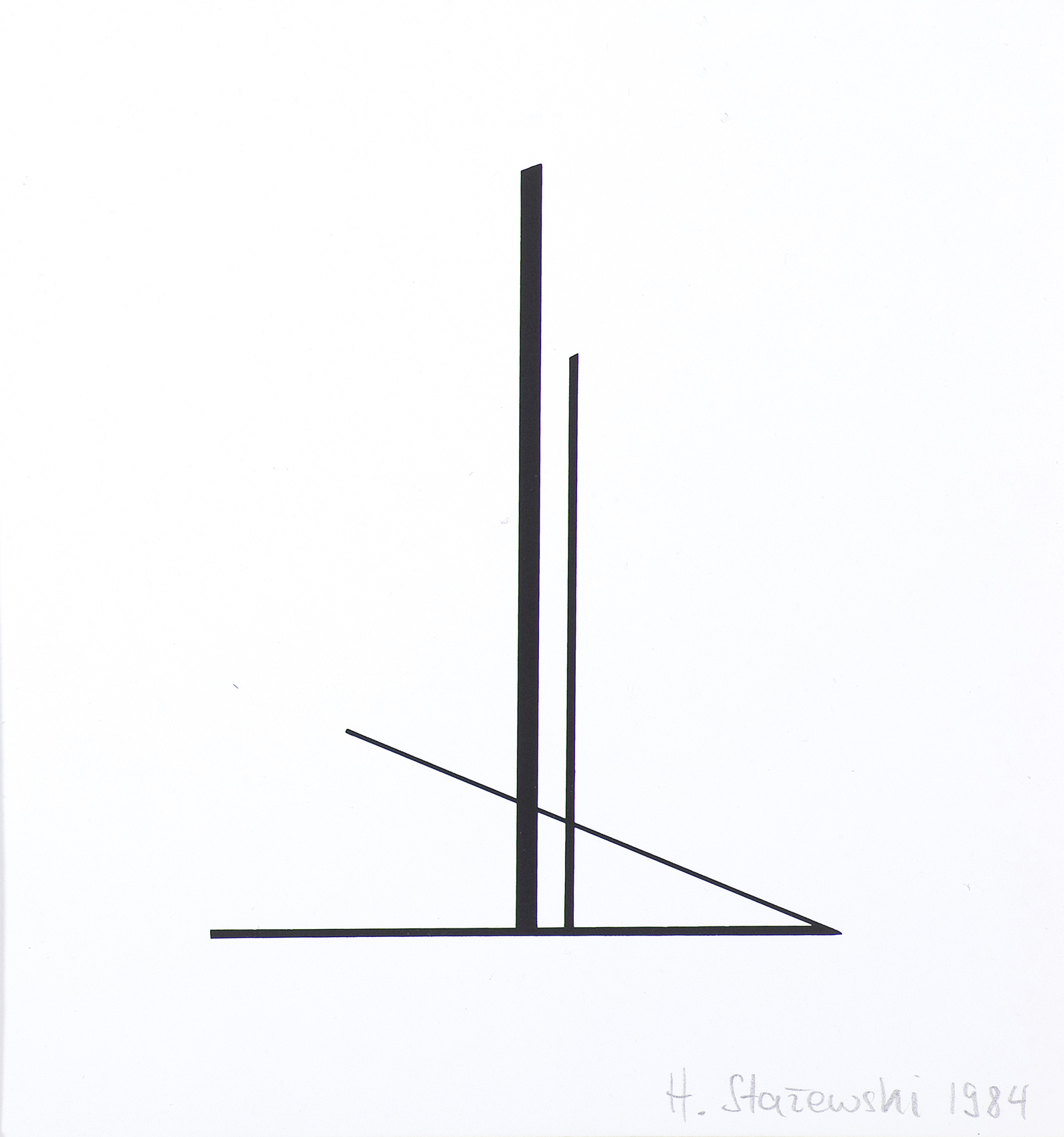 Henryk Stażewski (Warszawa 9 I 1894 - Warszawa 10 VI 1988) studiował w Szkole Sztuk Pięknych w Warszawie w latach 1913-1920. W początkach kariery malował martwe natury. Przejściowo wystawiał z ugrupowaniem „Formiści” (1922). Wziął też udział w Wystawie Nowej Sztuki w Wilnie w 1923. O tego czasu tworzył pod wpływem konstruktywizmu. Obok kompozycji malarskich trudnił się grafiką książkową, projektował wnętrza, sprzęty, a także scenografie – były to w większości prace teoretyczne i studyjne. Polskie i międzyna-rodowe ugrupowania awangardy, z którymi wystawiał i współpracował jako publicysta, to kolejno: „Blok” (1924-1926), „Praesens” (1926-1930), „Cercle et Carré” (1929-1931), „Abstraction-Création” (1931-1939), „a. r.” (1932-1939). Należał też do Koła Artystów Grafików Reklamowych (1933-1939). W 1930 był współorganizatorem zbiórki dzieł artystów międzynarodowej awangardy przeznaczonych dla muzeum łódzkiego (obecnie w Muzeum Sztuki w Łodzi). Po II wojnie mieszkał i działał w Warszawie. W latach 40. i 50. podejmował próby dostosowania się do postulatów sztuki figuratywnej. Z tego okresu pochodzą rysunkowe i malarskie kompozycje o tematyce pracy, budowy, a także projekty monumentalne. Po 1956, uznawany powszechnie za patrona polskiej awangardy, uprawiał już wyłącznie abstrakcję o konstruktywistycznym rodowodzie. Tworzył cykle prac, będących studiami płaszczyzn, linii, kolorów w różnych układach względem siebie. Przy pozorach chłodnej perfekcji umiał nasycić je emocją bezpośredniego dotknięcia, śladu ręki. Obok malarstwa i form pochodnych, jak collages, reliefy, multiple, tworzył formy przestrzenne i grafikę (autoryzował serigraficzne repliki swoich prac). Był laureatem wielu nagród i odznaczeń krajowych i zagranicznych, w tym Nagrody Herdera, Wiedeń 1972.