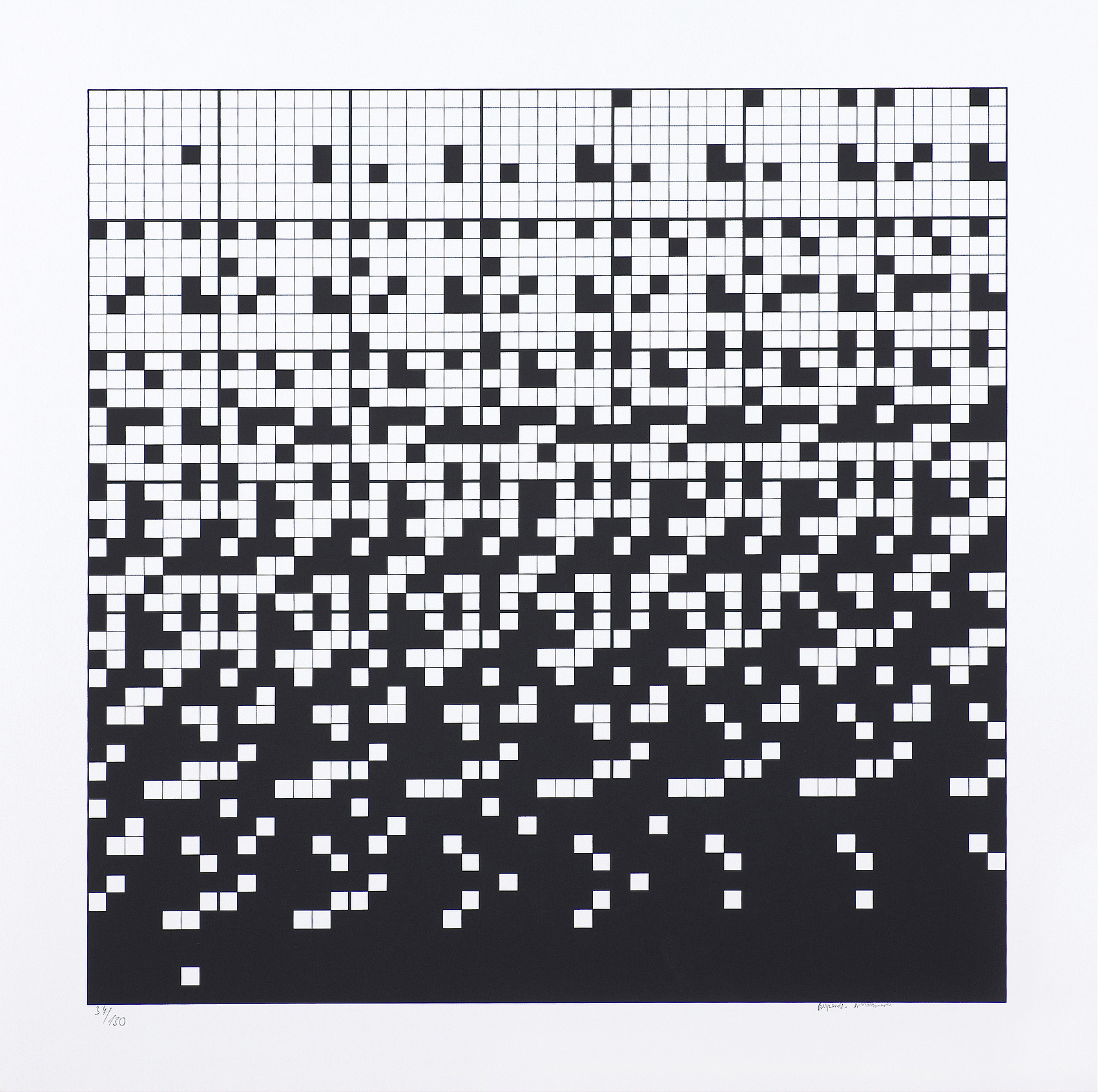 Ryszard Winiarski (Lwów 1936 - Warszawa 2006) ukończył w 1959 Politechnikę Warszawską i podjął studia malarskie w ASP w Warszawie (1960-1966). Pod koniec studiów, w 1965 sformułował własny program artystyczny i zrealizował pierwsze prace z serii pt. „Próby wizualnej prezentacji rozkładów statystycznych“. Otrzymał za nie I nagrodę na Sympozjum Artystów i Naukowców w Puławach w 1966. Jako stałe moduły prac przyjął kwadraty w kolorach czerni i bieli, których kolejnością i rozmieszczeniem rządzi przypadek - rzut kostką do gry, losowanie lub wybór liczb przypadkowych. W 1970 wprowadził do swych prac trzeci wymiar w formie obrazów przestrzennych lub jako iluzję przestrzeni uzyskaną przez wykreślanie perspektywy linearnej. W 1971 powstały pierwsze obrazy z wmontowanymi lustrami. Od 1972 artysta aranżował też „gry“ z udziałem widzów, którzy stosując jego środki i metodę wypełniali płaszczyznę czy pomieszczenie własną „wystawą“. Od ok. 1983 Winiarski włączył do swych prac elementy znaczeniowe, symboliczne i odwołujące się do emocji, jak kształt krzyża, naturalne materiały i zabiegi na nich, np. gięcie (instalacje: Geometria w stanie napięcia, 1984, Czarny kwadrat czyli fruwająca geometria, 1984, Hommage dla Henryka Stażewskiego, 1989). Równolegle artysta od 1960 uprawiał scenografię teatralną, będąc autorem kilkudziesięciu realizacji w tej dziedzinie w teatrach całej Polski. Uczestniczył w wielkiej liczbie wystaw w Polsce i za granicą, w tym: Biennale w Sao Paulo 1969, I i II Biennale des Konstruktivismus, Norymberga 1969 i 1971, Konstrukcja w procesie, Łódź 1981 i Monachium 1985. Zmarł 4 grudnia 2006 w Warszawie.