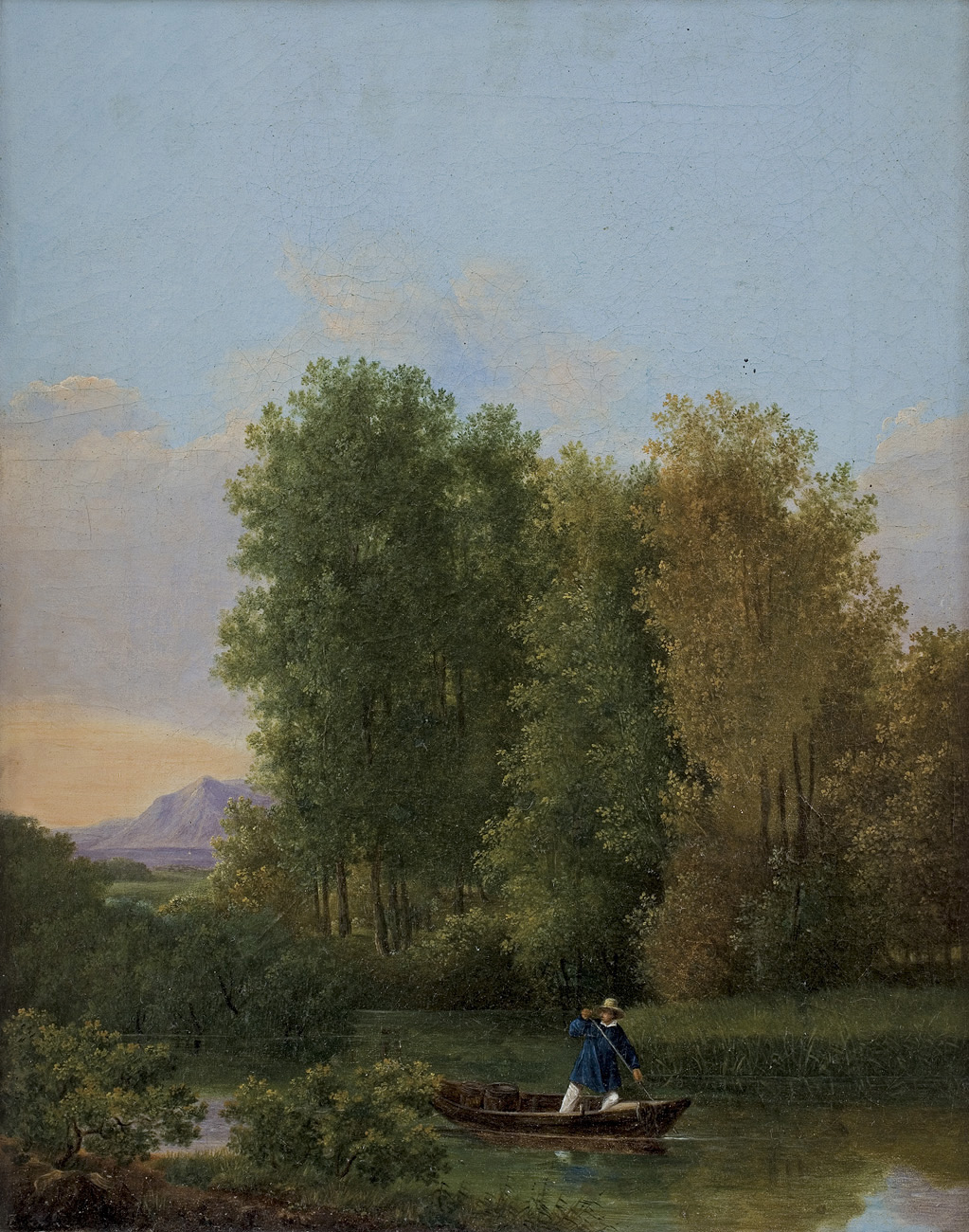Pejzaż romantyczny, obraz przesycony lirycznym, poetyckim nastrojem, w pełni odpowiada estetyce I poł. XIX w. Artysta połączył tu elementy realizmu i idealizmu; pejzaż odznacza się harmonią, spokojem i uczuciowością. Wysokie drzewa ocieniające spokojne wody stawu zróżnicowane są różnymi odcieniami drobiazgowo odtworzonego listowia, różowiejące od zachodzącego słońca niebo wnosi nastrój pogodneg...