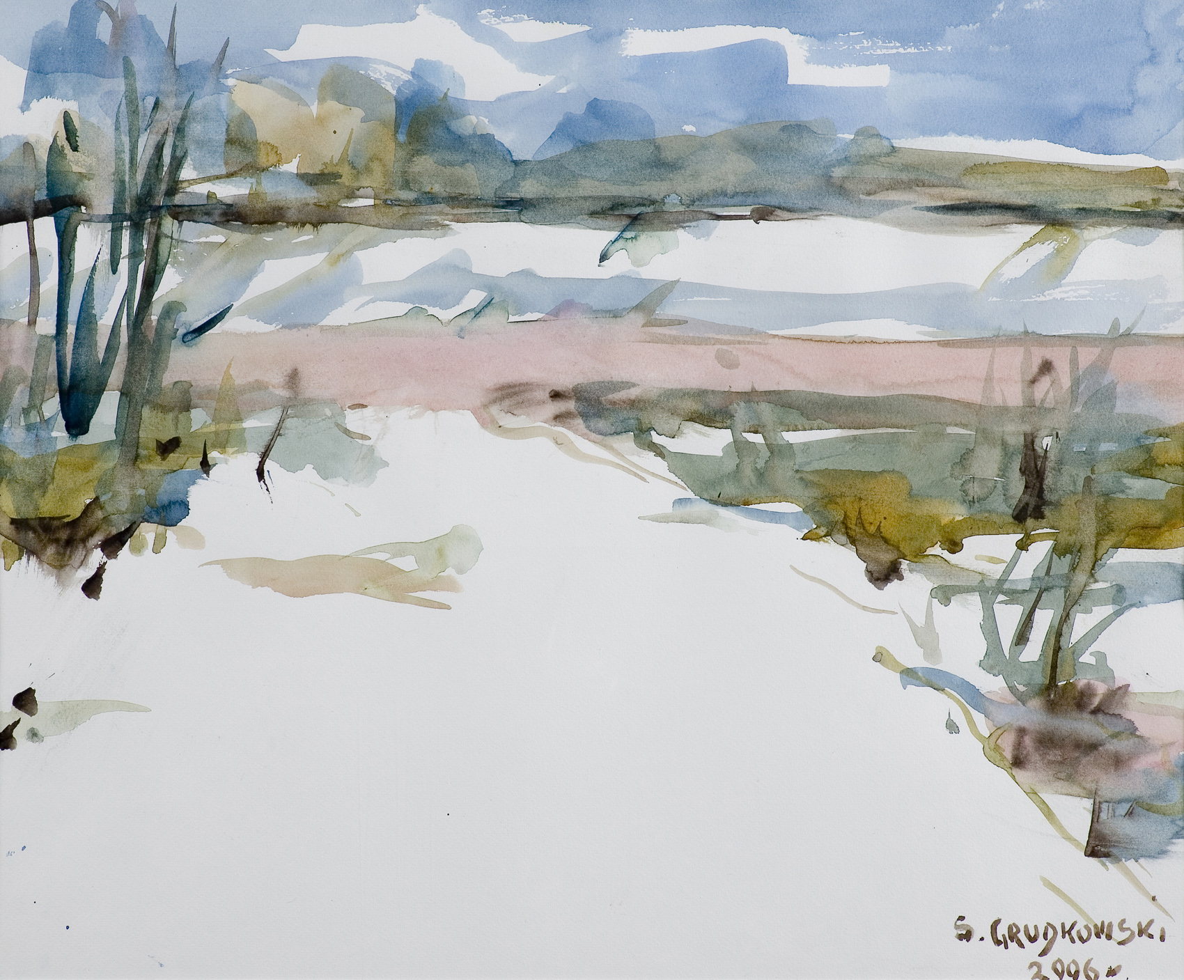 Sergiusz Grudkowski (Borowicze 11 II 1916 - Warszawa 10 VI 2008) - malarz, uznawany za jednego z najwybitniejszych współczesnych malarzy akwarelistów. Studiował w Akademii Sztuk Pięknych w Warszawie. Był uczniem Jana Cybisa i Janusza Podoskiego. Uprawiał również malarstwo sztalugowe. Prace artysty znajdują się w zbiorach prywatnych i muzeach, m.in.: Muzeum Historii m.st.Warszawy, Muzeum Narodowe w Warszawie, Akademie der Bildenden Wien w Wiedniu, Okręgowe Muzeum w Białowieży, Muzeum Jarosława Iwaszkiewicza w Stawiskach, Muzeum Mazowieckie w Płocku; Zamek Książąt Mazowieckich, Muzeum Okręgowe "Wisła" w Sandomierzu, Muzeum Teatru Narodowego w Warszawie.