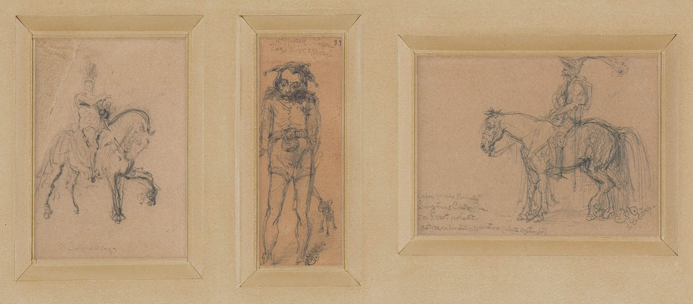 Jan Matejko (Kraków 1838 - Kraków 1893) - najwybitniejszy polski malarz historyczny; studia malarskie rozpoczął pod kierunkiem W. Łuszczkiewicza i W. K. Stattlera w krakowskiej Szkole Sztuk Pięknych (lata 1852-1858). Następnie uczył się w Akademii monachijskiej u H. Anschütza (1859) i przez dwa miesiące w Akademii wiedeńskiej u C. Rubena (1860). Po studiach mieszkał i pracował w Krakowie. W 1873 objął stanowisko dyrektora tamtejszej Szkoły Sztuk Pięknych, pełniąc tę funkcję aż do śmierci. Dużo podróżował - wielokrotnie wyjeżdżał do Paryża (w latach 1865-1880), Wiednia (1866-1888), w 1872 był w Konstantynopolu, a rok później w Pradze i Budapeszcie, odwiedzał również Włochy (1878-1879 i 1883). Był członkiem licznych akademii i towarzystw artystycznych m.in. Académie des Beaux-Arts (1873) i Instytutu Francuskiego (1874) w Paryżu, berlińskiej Akademii Sztuki (1874), Akademii Rafaelowskiej w Urbino (1878) i Künstlersgenossenschaft w Wiedniu (1888). W 1864 został członkiem Towarzystwa Naukowego w Krakowie, w 1887 otrzymał doktorat filozofii honoris causa Uniwersytetu Jagiellońskiego. Był twórcą wielkich i znanych płócien, m.in. Kazania Skargi, Rejtana, Unii Lubelskiej, Batorego pod Pskowem, Bitwy pod Grunwaldem, Hołdu Pruskiego czy Kościuszki pod Racławicami. Malował także portrety i - rzadziej - sceny religijne czy rodzajowe. Ważną rolę w jego twórczości odgrywał rysunek - artysta opracował, m.in. album Ubiory w Polsce od 1200 do 1795 oraz rysunkowy cykl Poczet królów i książąt polskich. W latach 1889-1891, wraz z zespołem uczniów, pracował nad polichromią kościoła Mariackiego w Krakowie. W rodzinnym domu malarza, przy ulicy Floriańskiej w Krakowie od 1898 mieści się poświęcone mu muzeum - Dom Matejki (Oddział MNK).