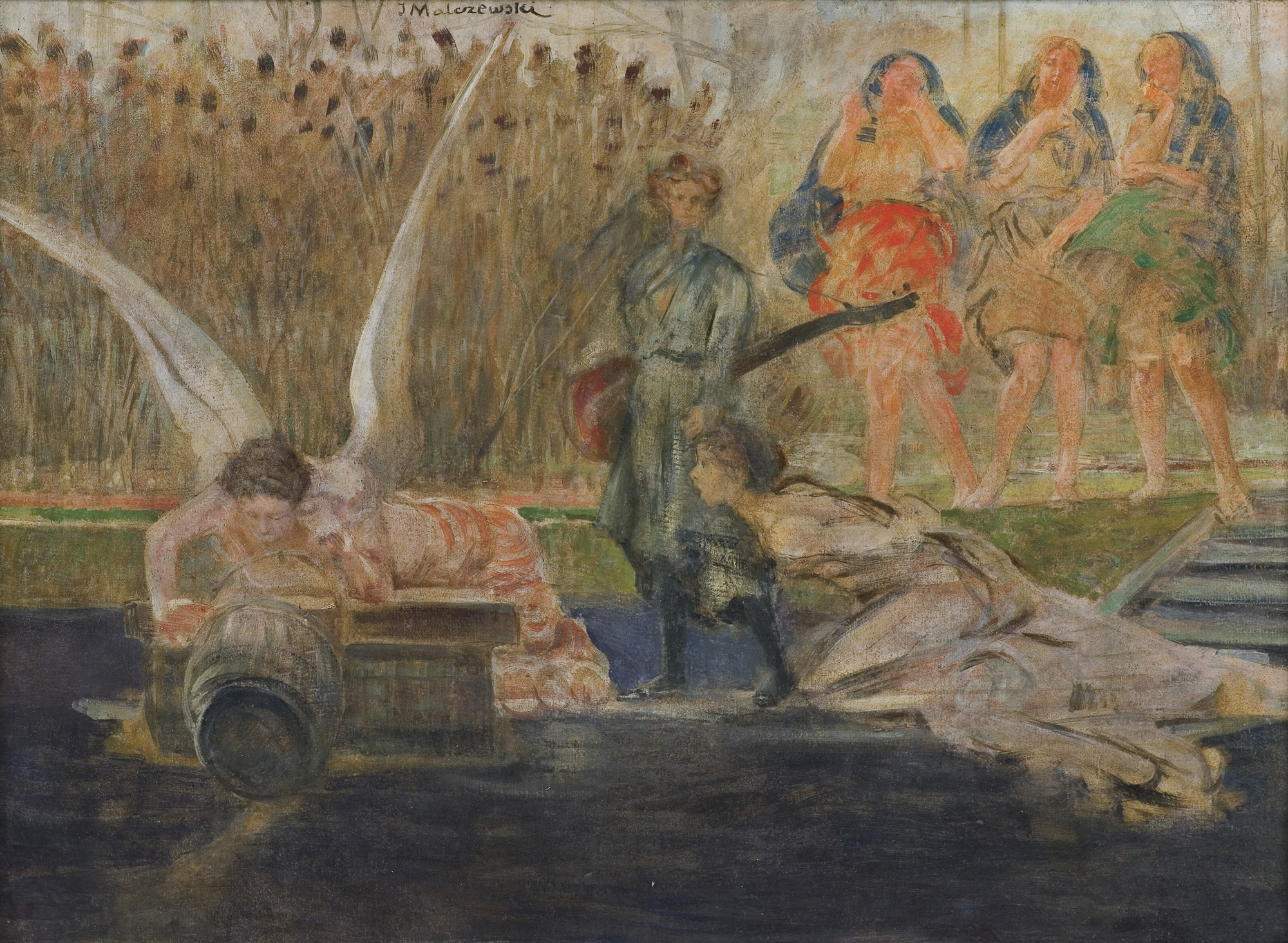 Prezentowane dzieło Malczewskiego wpisuje się w jedną z najważniejszych serii symbolicznych – powstały w latach 1905-1906 cykl obrazów Zatruta studnia. W 1907 roku nakładem Salonu Malarzy Polskich ukazało się (ilustrowane powyższym cyklem) wydawnictwo opatrzone poetyckimi tekstami Lucjana Rydla. Interpretacja obrazu Zatruta studnia z chimerą, 1905 (olej, płótno, 110 x 85, Muzeum Jacka Malczewskiego w Radomiu), zaproponowana przez poetę, może stanowić również objaśnienie naszego obrazu: