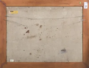 Na odwrocie l.g. nalepka wystawowa Muzeum Narodowego w Poznaniu (druk, maszynopis): Muzeum Narodowe Poznań | AUTOR / ARTISTE | Jacek Malczewski | TYTUŁ / TITRE U studni życia | ok. 1911 | WYSTAWA / EXPOSITION Monograficzna Jacka Malczew- | skiego XI. 1968 – II.1969 | 223 NR KAT. / CAT. NR.; ponadto dwie nalepki domu aukcyjnego w Warszawie.