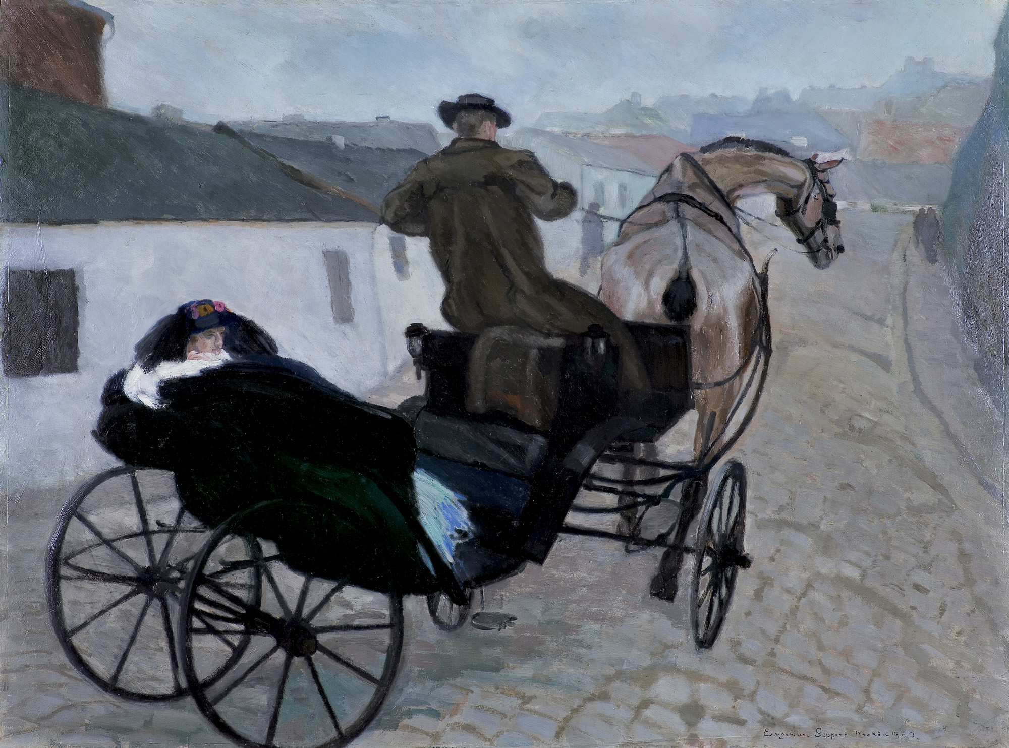 Eugeniusz Geppert (Lwów 1890 - Wrocław 1979) w latach 1912-14 i 1918-1920 studiował w krakowskiej Akademii Sztuk Pięknych pod kierunkiem Jacka Malczewskiego i Stanisława Dębickiego. Dyplom uzyskał w roku 1920. W latach 1925-1927 jako stypendysta ZPAP przebywał w Paryżu, dokąd i później wielokrotnie wyjeżdżał. W 1928 wrócił do kraju i zamieszkał w Krakowie. Należał do grup „Zwornik” i „Nowa Generacja”, był członkiem redakcji „Głosu Plastyków” oraz wiceprezesem i przedstawicielem Polski w „Confédération Internationale des Associations Plastiques”. Po wojnie osiadł na stałe we Wrocławiu, gdzie został profesorem Państwowej Wyższej Szkoły Sztuk Plastycznych, w różnych latach pełniąc funkcje dyrektora, rektora, kierownika pracowni malarskiej. W 1962 był współzałożycielem ugrupowania plastyków, tzw. „Szkoły Wrocławskiej”. Jednym z ulubionych motywów jego malarstwa byli jeźdźcy konni, przedstawiani tak w scenach historycznych, jak i współczesnych, batalistycznych i rodzajowych. Artysta nawiązywał tu do całej tradycji polskiego malarstwa, w szczególności do obrazów P. Michałowskiego. Malował także pejzaże, martwe natury i akty. Z czasem ciemna tonacja jego płócien uległa rozjaśnieniu, a kompozycja obrazów swoistej dekoracyjnej stylizacji w duchu malarstwa francuskiego, m.in. R. Dufy. Artysta brał udział w licznych wystawach – w okresie międzywojennym, podczas pobytu w Paryżu kilkakrotnie wystawiał na Salonie Jesiennym i w paryskich galeriach, później wielokrotnie w TPSP w Krakowie i Lwowie oraz w TZSP, IPS-ie i Salonie Garlińskiego w Warszawie. Swoje prace prezentował też za granicą, m.in. w 1938 na Międzynarodowej Wystawie Sztuki w Pittsburghu. Wiele wystaw miał też w okresie powojennym.