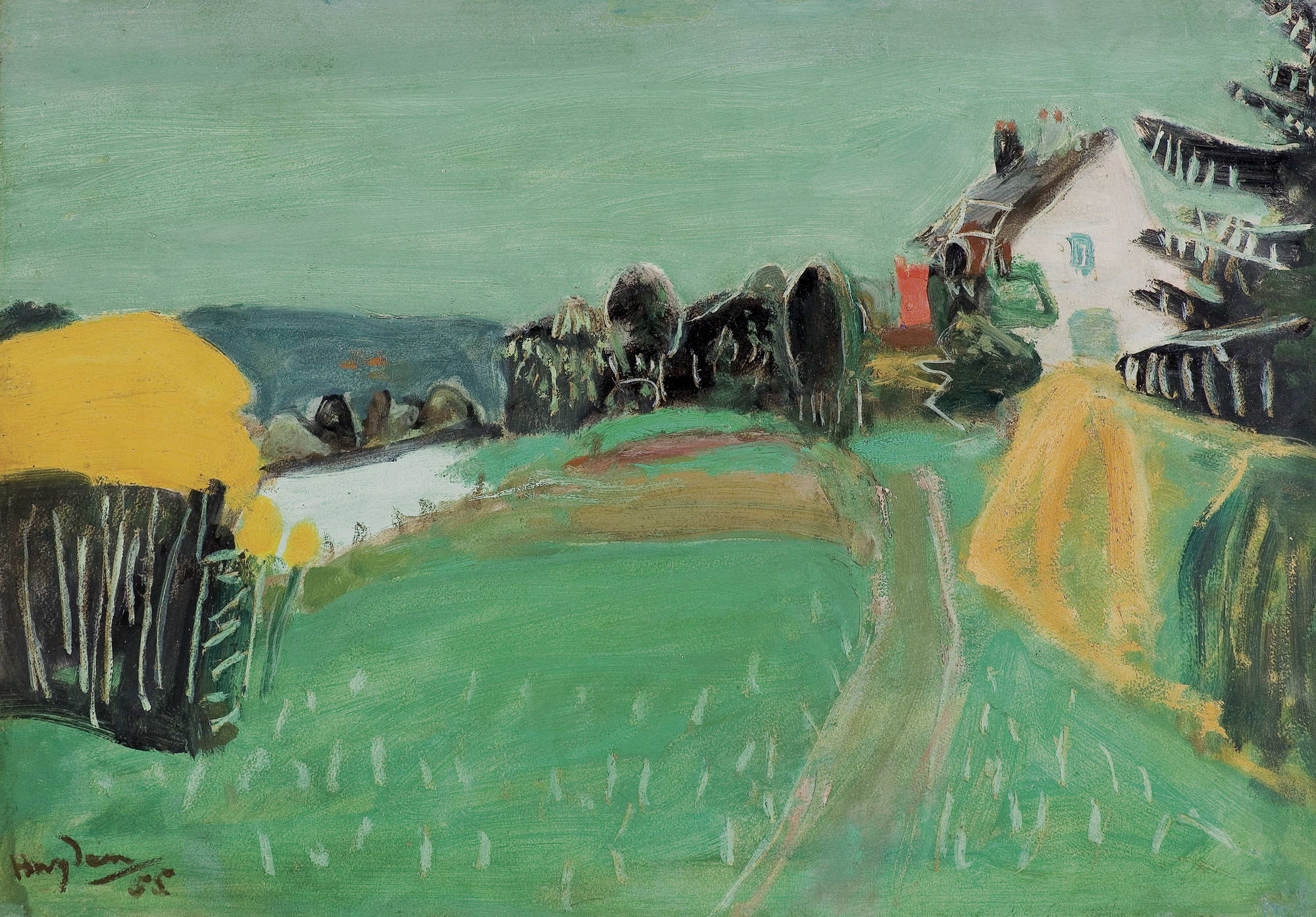 Henryk Hayden (Warszawa 1883 - Paryż 1970) był jednym z najwybitniejszych malarzy polskiego pochodzenia związanych ze środowiskiem École de Paris. Studia artystyczne rozpoczął w warszawskiej Szkole Sztuk Pięknych; równolegle kształcił się także na Politechnice Warszawskiej. W 1907 wyjechał do Paryża, gdzie zapisał się jeszcze do Académie „La Palette”. Od 1908 często wyjeżdżał do Bretanii, kontaktując się tam z W. Ślewińskim. Po 1915 związał się z kręgiem paryskiej awangardy artystycznej, m.in. P. Picassem, J. Grisem, G. Severinim czy H. Matisseem. We Francji pozostał na stałe. W 1920 odwiedził rodzinę w Polsce, ale jego związki z krajem były dość luźne – z rzadka tylko przesyłał obrazy na wystawy. Wiele natomiast wystawiał we Francji; od 1909 regularnie brał udział w paryskich Salonach, miał też wystawy indywidualne. W czasie II wojny światowej przebywał w południowej Francji i wówczas nawiązała się jego wieloletnia przyjaźń z S. Beckettem. Malował pejzaże, portrety i martwe natury, wykazujące początkowo związki z malarstwem Ślewińskiego, a później (1912-21) twórczością Cezanne’a i kubizmem. Po roku 1922 tworzył realistyczne portrety i pejzaże; pod koniec życia powrócił do doświadczeń kubistycznych.