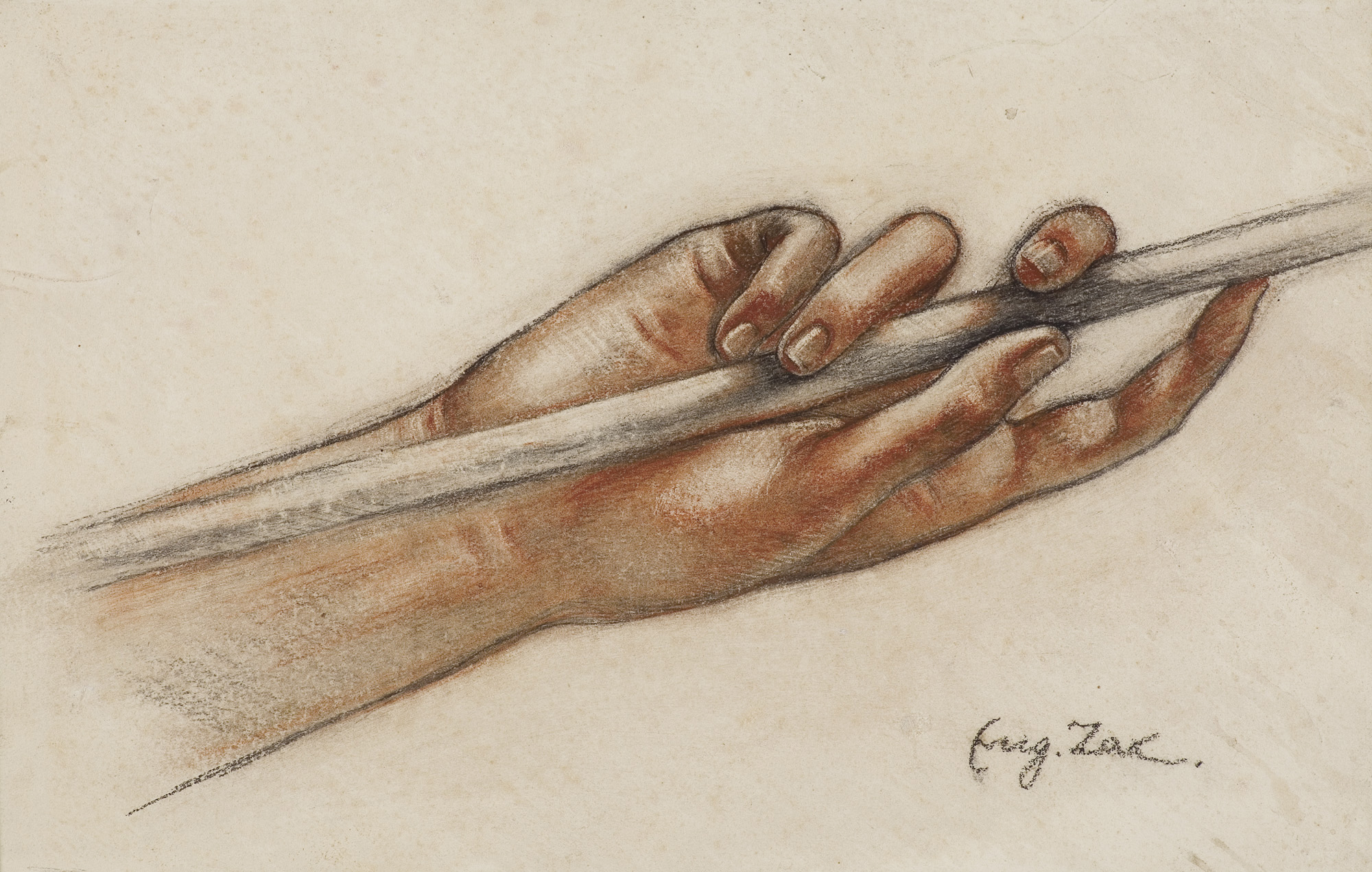 Eugeniusz Zak (Żak) (Mogilno/Mohylno w dawnej guberni mińskiej 1884 – Paryż 1926) dzieciństwo spędził w Mogilnie (Mohylnie) i (od 1892) w Warszawie. W roku 1902 wyjechał do Paryża, gdzie studiował w École des Beaux-Arts u Jeana Léona Gérôme’a i w Académie Colarossi u Alberta Besnarda. W 1903 podróżował do Włoch, był w Rzymie, we Florencji, Pizie, Mediolanie. Następnie pojechał do Monachium, gdzie przez pół roku kształcił się u Antona Ažbego. W 1904 powrócił do Paryża i zadebiutował w Salonie Jesiennym. W Paryżu pozostał do 1914, później przeniósł się do Vence i Nicei. Lata 1916-1921 spędził w Polsce. W 1921 wyjechał do Niemiec; mieszkał w Bonn (gdzie wykonał polichromie do willi architekta F.A. Breuhausa), później w Berlinie. W 1923 wrócił do Paryża. Wiele wystawiał, biorąc m.in. udział w paryskich Salonach, w wystawach w Barcelonie (1912), Wenecji (Biennale 1914), Wiedniu (1915). Czynnie uczestniczył także w polskim życiu artystycznym – należał do Tow. Artystów Polskich „Sztuka”, wystawiał też z Formistami, był współzałożycielem ugrupowania „Rytm”. Był jednym z najwybitniejszych polskich artystów tzw. École de Paris. Inspiracji szukał w sztuce renesansu, w malarstwie Cezane’a i Picassa. We wcześniejszym okresie twórczości malował portrety oraz wykonywał – inspirowane sztuką renesansową – sangwinowe rysunki głów i popiersi. Malował też idealizowane, liryczne i poetyckie w nastroju sceny w pejzażu, a po 1920 kompozycje figuralne z jedną lub kilkoma postaciami pasterzy, tancerek, arlekinów we wnętrzach lub w pejzażu. Jego obrazy przesycone są łagodnym nastrojem melancholii i zadumy. Wiotkie sylwetki przedstawianych postaci artysta poddawał swoistej stylizacji – wydłużając proporcje i nadając im giętkie, niemal taneczne pozy. Obrazy te odznaczają się dekoracyjnością, rytmicznymi, „tanecznymi” układami form, miękkim światłocieniowym modelunkiem, a często także efektami fakturowymi.