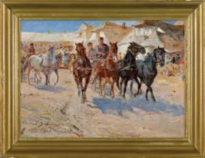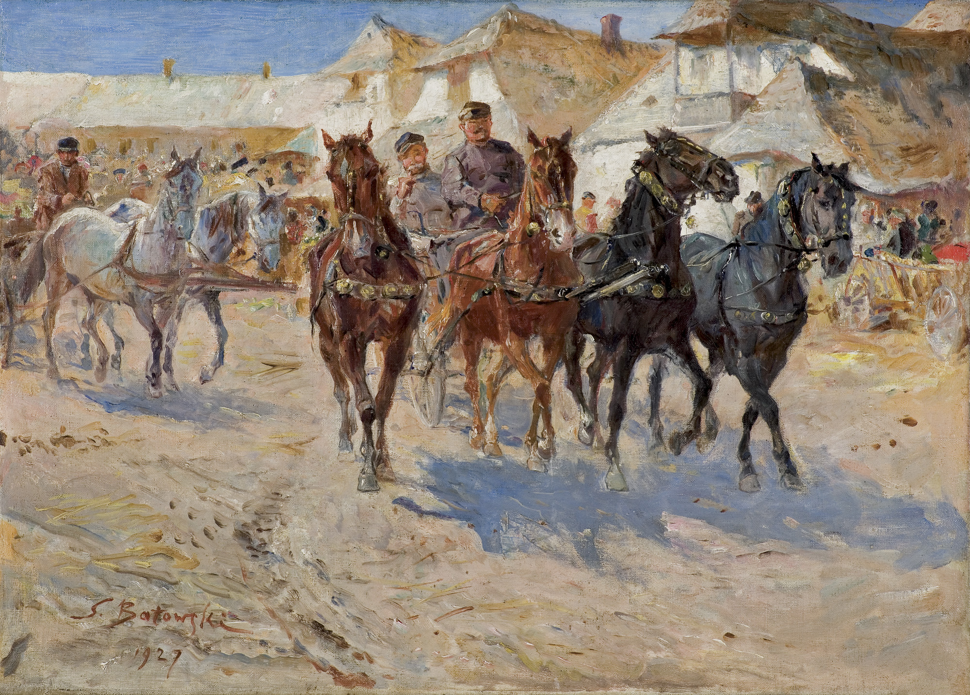 Stanisław Kaczor-Batowski (Lwów 1866 - Lwów 1946) - studia artystyczne rozpoczął w krakowskiej Szkole Sztuk Pięknych pod kierunkiem Władysława Łuszczkiewicza i Floriana Cynka. Później kształcił się w Akademii w Wiedniu, a w l. 1887-1889 także w Akademii w Monachium pod kierunkiem A.Liezen-Mayera. Podróżował do Włoch, Hiszpanii, Maroka i na Krym; był także w Stanach Zjednoczonych. Stale mieszkał we Lwowie, gdzie w latach 1903-1914 prowadził własną szkołę malarstwa. Był współzałożycielem lwowskiego Stowarzyszenia Artystów „Młoda Polska”. Znany jest przede wszystkim jako batalista, twórca takich płócien, jak Atak husarii pod Chocimiem (Muzeum Wojska Polskiego w Warszawie), Pułaski pod Savannach, Bitwa pod Zadwórzem(Muzeum Wojska Polskiego w Warszawie). Malował także pejzaże, portrety i obrazy religijne. Zajmował się także ilustratorstwem, m.in. wykonał cykle kartonów i ilustracji do utworów J. Słowackiego, powieści H. Sienkiewicza i E. Orzeszkowej. Projektował witraże (np. do katedry łacińskiej we Lwowie), zajmował się malarstwem ściennym, współpracując m.in. przy dekoracji lwowskiego teatru.