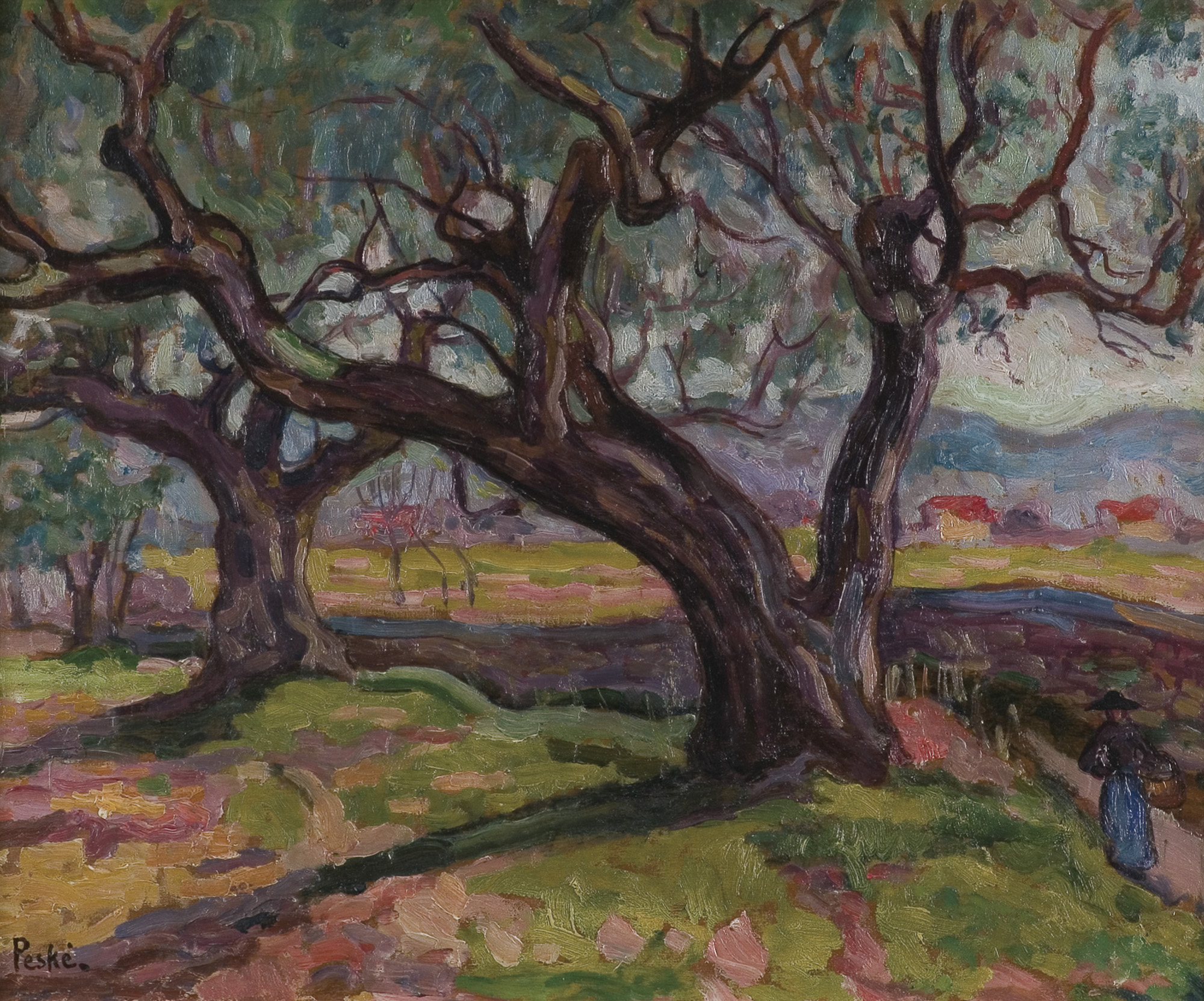 Jean Peské (Gołta w Ukrainie 1870 - La Mains 1949) - uczył się początkowo w Szkole Malarstwa Nikołaja Muraszki w Kijowie, a następnie w latach 1886-1889 w Szkole Sztuk Pięknych w Odessie. W 1890 został uczniem Wojciecha Gersona w Warszawie. W 1891 wyjechał do Paryża, gdzie kontynuował studia w Académie Julian pod kierunkiem Jean-Paula Laurensa i Benjamina Constanta. Osiadł tam na stałe, wrastając zarówno w środowisko Polonii paryskiej – kontaktował się m.in. z Marią Skłodowską-Curie i Gabrielą Zapolską – jak też nawiązując znajomości, częściowo za pośrednictwem tej drugiej, ze środowiskiem malarzy i grafików, jak Paul Signac, Paul Sérusier, Félix Fénéon, Henri de Toulouse-Lautrec, Camille Pissarro. Od 1894 uczestniczył w Salonach: Niezależnych, Société Nationale des Beaux-Arts, Tuileryjskim, w 1901 miał pierwszą wystawę indywidualną w redakcji „La Revue Blanche”. Uczestnicząc intensywnie w życiu artystycznym Paryża, utrzymywał też kontakty z krajem, gdzie wystawiał w Zachęcie w Warszawie (1892) oraz w Towarzystwie Przyjaciół Sztuk Pięknych we Lwowie (1900) i Krakowie (1910), uczestniczył też w wystawie sztuki polskiej w Grand Palais w Paryżu w 1921. Pracował wiele na plenerach na południu Francji – w Bormes, gdzie do 1926 miał pracownię i w Collioure, gdzie utworzył muzeum współczesnej sztuki francuskiej (obecnie jego imienia i z kolekcją jego prac). Malarstwo artysty ukształtowało się w kręgu oddziaływania postimpresjonistów i nabistów, a także secesyjnej stylizacji. Chętnie podejmował temat macierzyństwa, malował martwe natury, sceny rodzajowe i pejzaże z południa Francji.