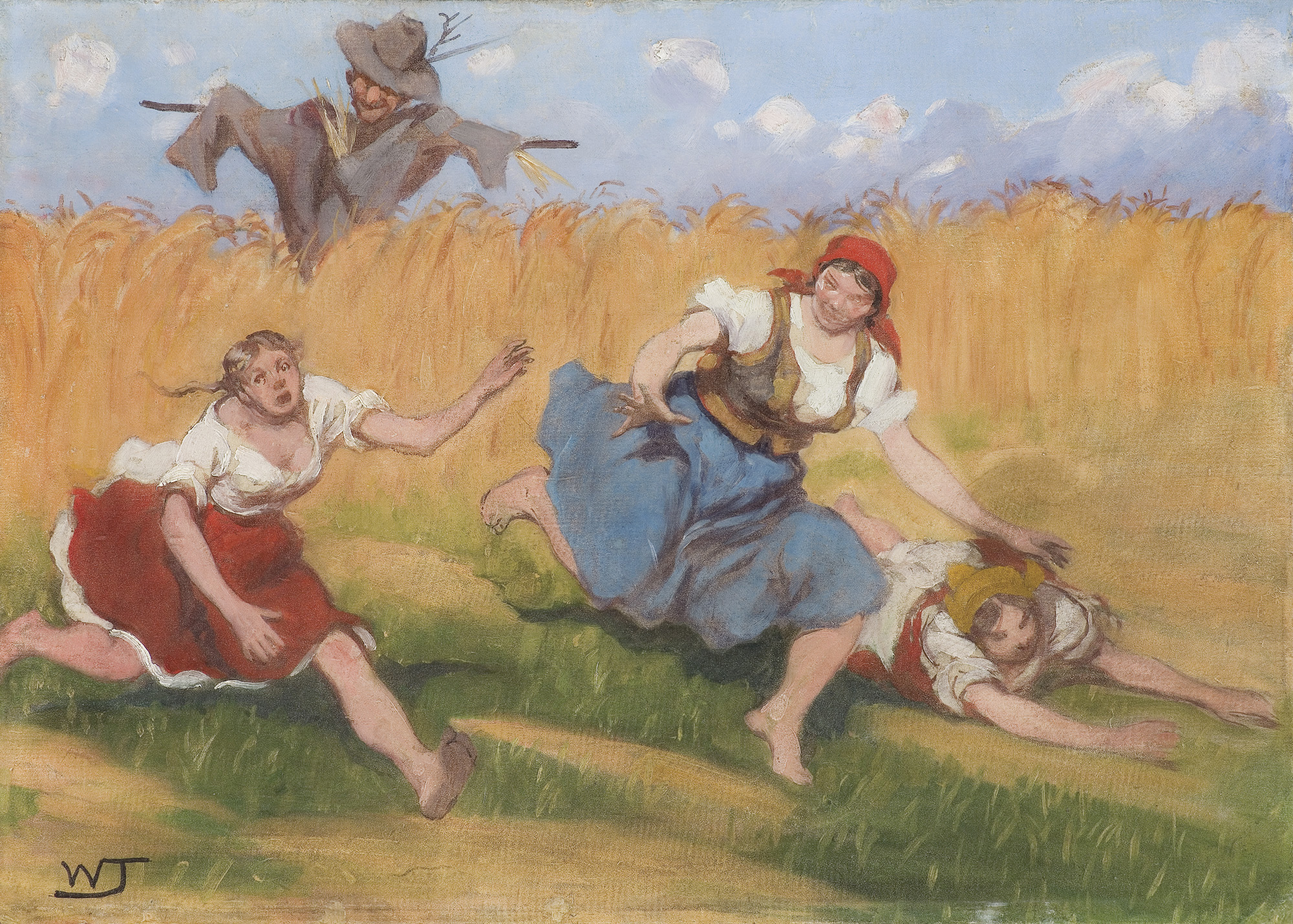 Włodzimierz Przerwa-Tetmajer (Harklowa koło Ludźmierza na Podhalu 1862 - Kraków 1923), przyrodni brat poety Kazimierza, naukę malarstwa rozpoczął wcześnie; już od 1875 uczęszczał na zajęcia do Szkoły Sztuk Pięknych w Krakowie, gdzie następnie (z przerwami) kształcił się do 1895 - początkowo u Franciszka Cynka, Leopolda Loefflera i Władysława Łuszczkiewicza, a po 1889 u Jana Matejki. Równolegle studiował filologię klasyczną na Uniwersytecie Jagiellońskim. W 1882 uczył się jeszcze w Akademii Wiedeńskiej, a w latach 1886-89 w Akademii Monachijskiej u Aleksandra Wagnera. Studia uzupełniał w paryskiej Académie Colarossi. Stypendium cesarskie umożliwiło mu wyjazd do Rzymu. Po powrocie mieszkał w Krakowie. W 1890 ożenił się z Anną Mikołajczykówną, córką gospodarza z podkrakowskiej wsi Bronowice, gdzie sam często przebywał, a w 1895 zamieszkał na stałe. W 1901 założył i następnie przez kilka lat prowadził szkołę malarstwa dla kobiet. Od 1899 był członkiem Towarzystwa Artystów Polskich „Sztuka”; w 1901 jednym z założycieli Towarzystwa „Polska Sztuka Stosowana”; w 1908 współzałożycielem grupy „Zero”. Był wybitnym przedstawicielem nurtu „ludowości”, malarzem obyczajów, pracy i krajobrazu podkrakowskiej wsi. We wcześniejszym okresie tworzył w duchu akademickiego, monachijskiego realizmu. Później wykształcił własny, oryginalny styl - kompozycja jego obrazów była swobodna, malował szerokimi pociągnięciami pędzla, używał jasnych, żywych barw. W latach 1892-1894 współpracował z Wojciechem Kossakiem i Janem Styką przy Panoramie Racławickiej. Projektował witraże, zajmował się ilustratorstwem i malarstwem ściennym, m.in. w 1902 wykonał polichromię kaplicy królowej Zofii w Katedrze na Wawelu. Artysta był pierwowzorem postaci Gospodarza w dramacie S. Wyspiańskiego Wesele.