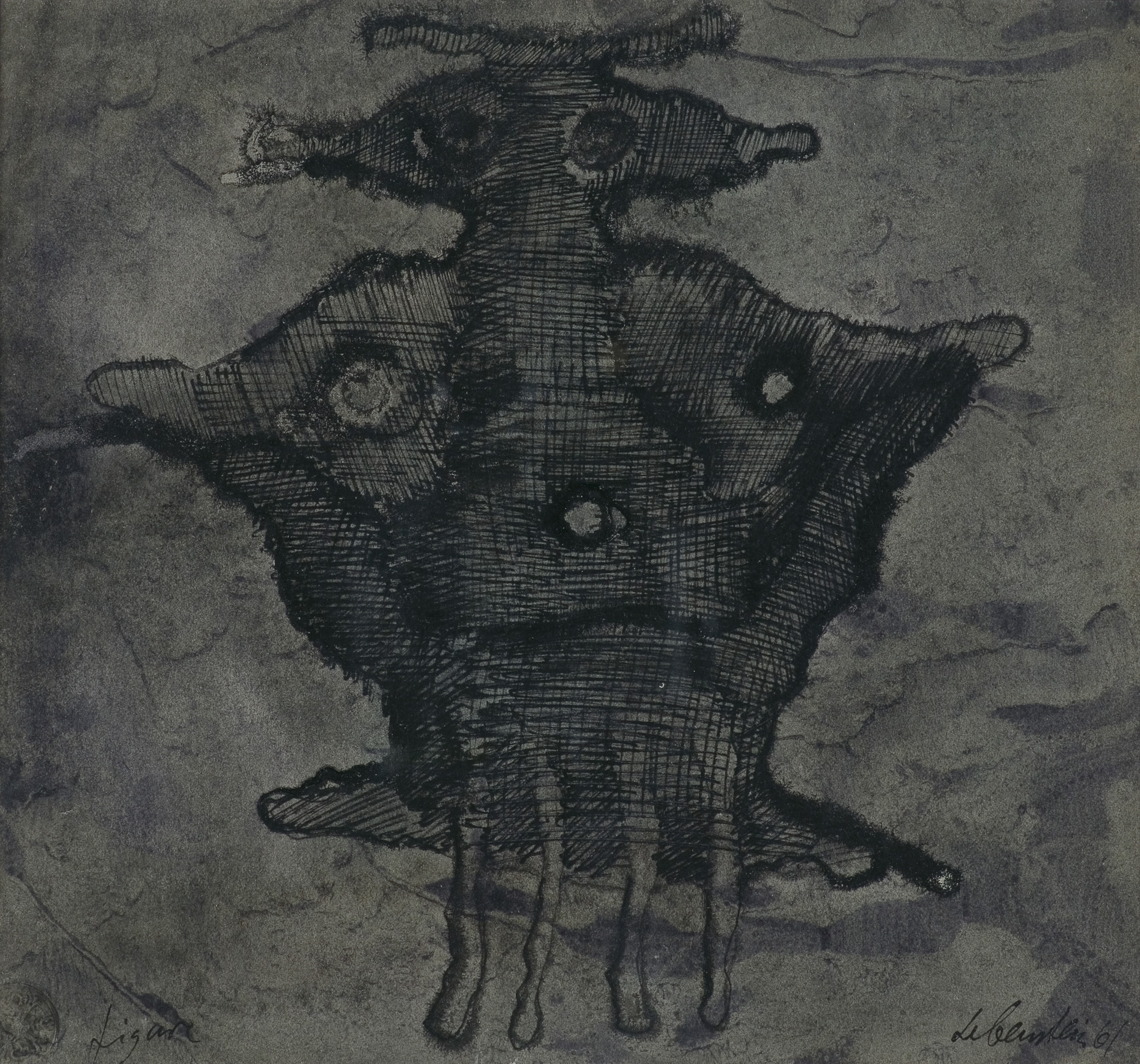 Jan Lebenstein (Brześć Litewski 1930 - Kraków 1999) w latach 1948-1954 studiował malarstwo w ASP w Warszawie pod kierunkiem prof. Eugeniusza Eibischa i Artura Nachta-Samborskiego. W 1955 wziął udział w wystawie w warszawskim Arsenale. Zaprzyjaźniony w czasie studiów z Mironem Białoszewskim, swą pierwszą wystawę indywidualną pokazał w 1956 w Teatrze na Tarczyńskiej. W 1959 zdobył Grand Prix de la Ville de Paris na I Biennale Młodych w Paryżu i w tym roku przeniósł się na stałe do Paryża. Po seriach "figur kreślonych" (na papierze milimetrowym) i "figur hieratycznych" z lat 1955-1958 maluje cykl "figur osiowych" (1958-1962), które wystawia w Paryżu i USA. Równolegle w 1960 zaczyna rysowane "karnety", rodzaj dziennika, który w przyszłości dostarczy motywów wykorzystanych w obrazach. W latach 1964-1965 maluje "Bestiarium", cykl fakturowych, archaizowanych stworów przypominających prehistoryczne wykopaliska. Bezpośrednio po nich wprowadza do swych obrazów postaci ludzkie i fantastyczne, odgrywające sceny ni to mitologiczne, ni to ze snu, często przesycone erotyką. W 1970 projektuje witraże dla Centre du Dialogue w Paryżu. W W 1971 otrzymuje obywatelstwo francuskie 1974 powstają gwasze inspirowane Folwarkiem zwierzęcym George'a Orwella. W latach 1976-1989 tworzy wyłącznie w technice gwaszu i pastelu, podejmując tematykę mitologiczną i zaczerpniętą z Biblii: cykle ilustracji do Księgi Hioba (wyd. 1979) i do Apokalipsy (wyd. 1986) w nowych przekładach Czesława Miłosza. W 1989 powraca do malarstwa olejnego (cykl "Pergamon"). Artysta otrzymał m. in. nagrodę Fundacji im. Alfreda Jurzykowskiego w 1976, Nagrodę Muzeum Archidiecezji Warszawskiej w 1985, Nagrodę im. Jana Cybisa w 1987.