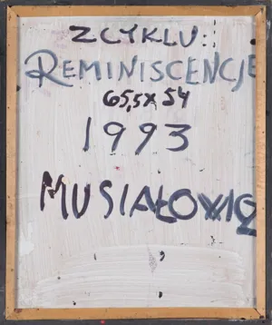 Henryk Musiałowicz (Gniezno 5 I 1914 - Warszawa 24 II 2015) od 1930 uczył się w Państwowej Szkole Sztuk Zdobniczych i Przemysłu Artystycznego w Poznaniu. W 1936 uzyskał absolutorium na Wydziale Malarstwa Dekoracyjnego i Witrażownictwa. W 1937 podjął studia malarskie w warszawskiej ASP pod kierunkiem Felicjana Kowarskiego i Leonarda Pękalskiego (dyplom pod kierunkiem tego pierwszego uzyskał w 1947). Lata okupacji spędził w Warszawie, kontynuując twórczość artystyczną (wykonywał w tym czasie m.in. ekslibrisy). Współpracował z Departamentem Informacji Delegatury Rządu na Kraj. Od 1940 związany był z grupą absolwentów warszawskiej uczelni, działającą w latach okupacji w tzw. Bacciarellówce na terenie Zamku Królewskiego, a po wojnie znaną jako grupa „Warszawa“. W sztuce Musiałowicza, zwłaszcza bezpośrednio po wojnie, silnie zaznaczyły się wątki związane z martyrologią, tragedią Powstania Warszawskiego, zburzeniem Warszawy, której ruiny upamiętnił w cyklu rysunków z 1945-1946. Poszukując formy odpowiedniej dla przeżyć wojennych, znalazł ją w sztuce Holendrów, zwłaszcza Rembrandta, którego twórczość poznał podczas podróży w 1956. Odtąd na stałe zdominował jego malarstwo ciemny koloryt, uspokojona, niekiedy hieratyczna kompozycja form zaledwie sugerujących figury ludzkie, bogata faktura i połyskliwość powierzchni. Z czasem artysta zaczął konstruować formy przestrzenne z drewna, jak zwykle pokrytego bogatą warstwą malarską, w wydłużonych stojących kształtach. Musiałowicz do 1983 aktywnie działał w ZPAP. Był członkiem międzynarodowych organizacji artystycznych, w tym kilku włoskich, jak Accademia Tibertina w Rzymie (od 1965), Accademia Italiana delle Arti e del Lavoro w Parmie (od 1979), Accademia Europea, Calvatone (od 1985). W 2002 wielką retrospektywę jego twórczości zorganizowało Muzeum Narodowe w Poznaniu.
