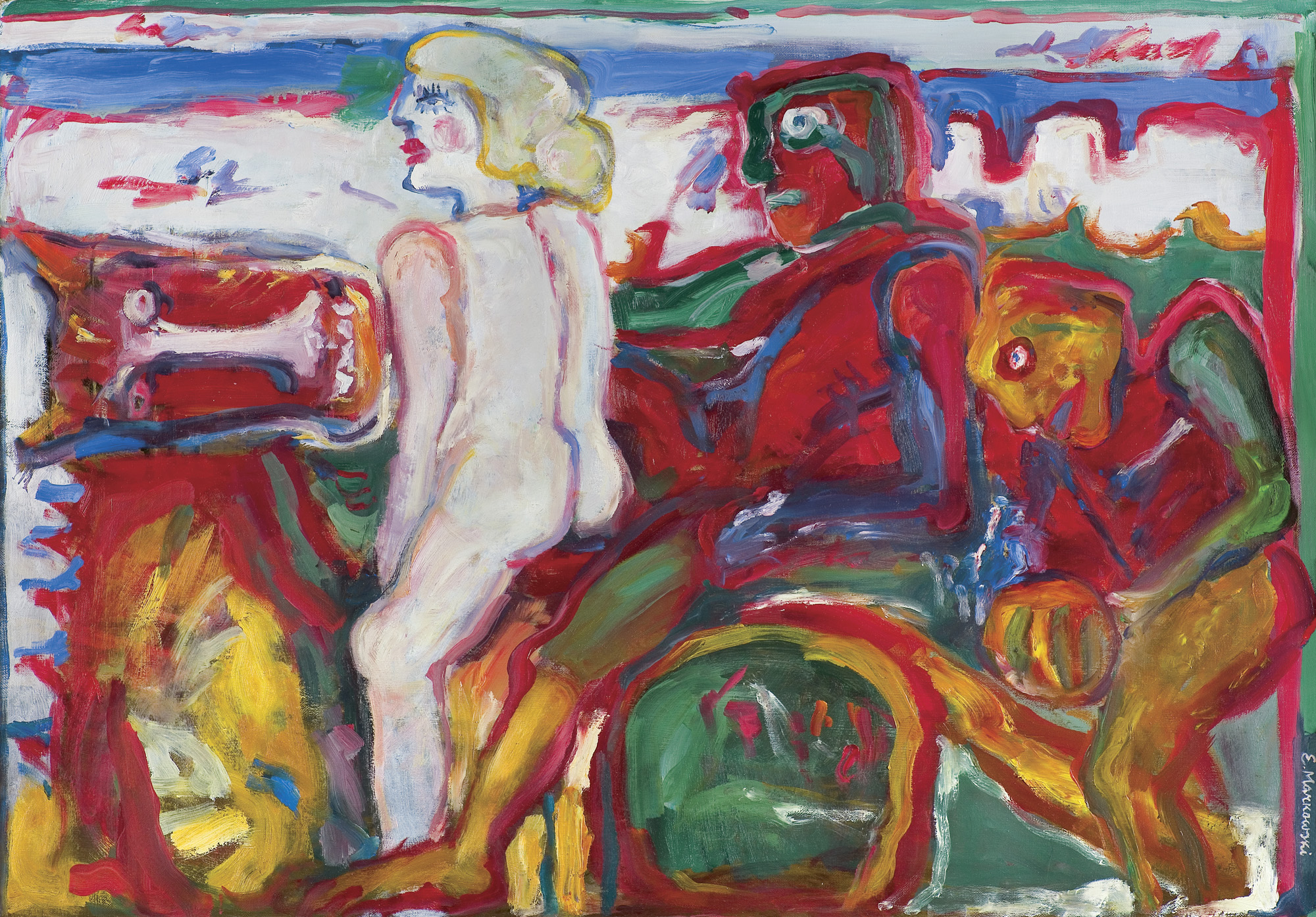 Eugeniusz Markowski (Warszawa 8 XI 1912 - Warszawa 24 II 2007) studiował w warszawskiej ASP, dyplom u prof. Tadeusza Pruszkowskiego uzyskał w 1939. Brał udział w kampanii wrześniowej i obronie Warszawy. W latach 1940-1950 przebywał we Włoszech, gdzie związał się z grupą Libera Associazione Arti Figurative i z Art Club w Rzymie. Zajmował się też projektowaniem scenografii dla rzymskiego Teatro delle Arti. Był dziennikarzem i dyplomatą we Włoszech i Kanadzie (1945-1955). Po powrocie do kraju był dyrektorem Biura Współpracy Kulturalnej z Zagranicą Ministerstwa Kultury i Sztuki (1960-1969), następnie wykładowcą i profesorem ASP w Warszawie (1969-1984). Współ-pracował jako scenograf z Operą Gdańską i teatrami warszawskimi. W 1963 reprezentował Polskę na Biennale w Sao Paulo, miał kilka wystaw indywidualnych. Jego ekspresyjny styl malowania, bezpośredniość i pewna rubaszność figuratywnych przedstawień walk i zmagań spowodowały, że w latach 80. uznano go za prekursora „nowodzikich".