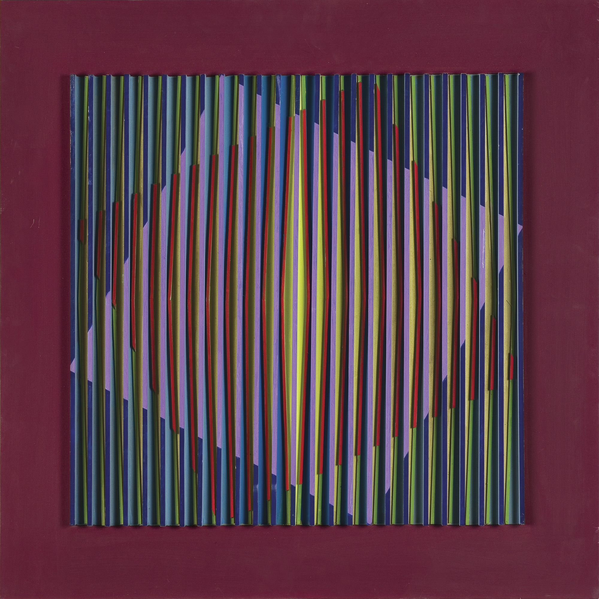 relief, akryl, listwy drewniane, płyta