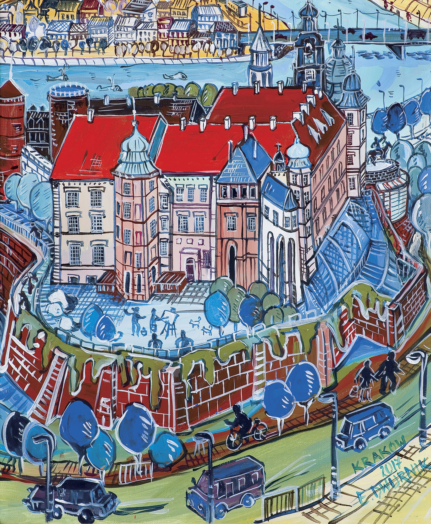 Edward Dwurnik (Radzymin 19 IV 1943 - Warszawa 28 X 2018) studiował malarstwo w ASP w Warszawie (1963-1970), jednak jako swego „mistrza“ wymienia Nikifora. Jego to prace, zobaczone po raz pierwszy w 1965, zainspirowały ówczesnego studenta III roku do narysowania pierwszych prac z cyklu „Podróże autostopem“, które kontynuował w nastepnych latach. W 1972-1978 powstawał cykl „Sportowcy“, w którym portretowane były, dodajmy - kąśliwie, typowe postaci z lat 70. Równolegle od 1975 powstawał cykl „Robotnicy“, który kulminował w okresie „Solidarności“ 1980-1981. Za prace z tego cyklu Dwurnik otrzymał w 1981 Nagrodę Krytyki Artystycznej im. Cypriana Kamila Norwida, natomiast za obrazy z cyklu „Warszawa“ (1981), proroczo zapowiadające stan wojenny - Nagrodę Kulturalną „Solidarności“ podziemnej w 1983. W latach 80. malarstwo Dwurnika przybrało wyraz ekspresyjny i dramatyczny. Powstające w tej dekadzie obrazy miały niejednokrotnie wymowę polityczną, przybierały też kostium historyczny, tak czy inaczej odnoszący się do współczesnych spraw i realiów. Cykl „Droga na Wschód“ (1989-91) upamiętniał ofiary stalinizmu, natomiast cykl „Od Grudnia do Czerwca“ (1990-94) - ofiary stanu wojennego. Zarówno ideowe, jak i czysto malarskie walory tych prac przyniosły artyście ogromne uznanie, zarówno w kraju jak i za granicą. Jego wyrazem była prestiżowa nagroda Fundacji Coutts & Co w Zurychu (1992). W latach 90. powstają cykle będące kontynuacją „Podróży autostopem“: „Niebieskie miasta“ (od 1993) i „Diagonale“ (od 1996), jak również kompozycje nowego typu, jak widoki morskie (cykl „Błękitne“, 1992-93) czy cykl „Wyliczanka“ (1996-99). Artysta wiele wystawia, miał ok. 100 wystaw indywidualnych w Polsce i za granicą, brał też udział w licznych wystawach i festiwalach krajowych i międzynarodowych, m.in.: X Biennale Sztuki Współczesnej, Menton 1974, Documenta 7, Kassel 1982, 5th Biennale, Sydney 1985, XIX Biennale Sztuki, Sao Paulo 1987; Olimpiada Sztuki, Seul 1988. Równolegle z malarstwem uprawiał rysunek, collage, grafikę warsztatową (litografia, techniki metalowe, kserografia, stemple) i użytkową (ilustracja, plakaty do własnych wystaw indywidualnych).