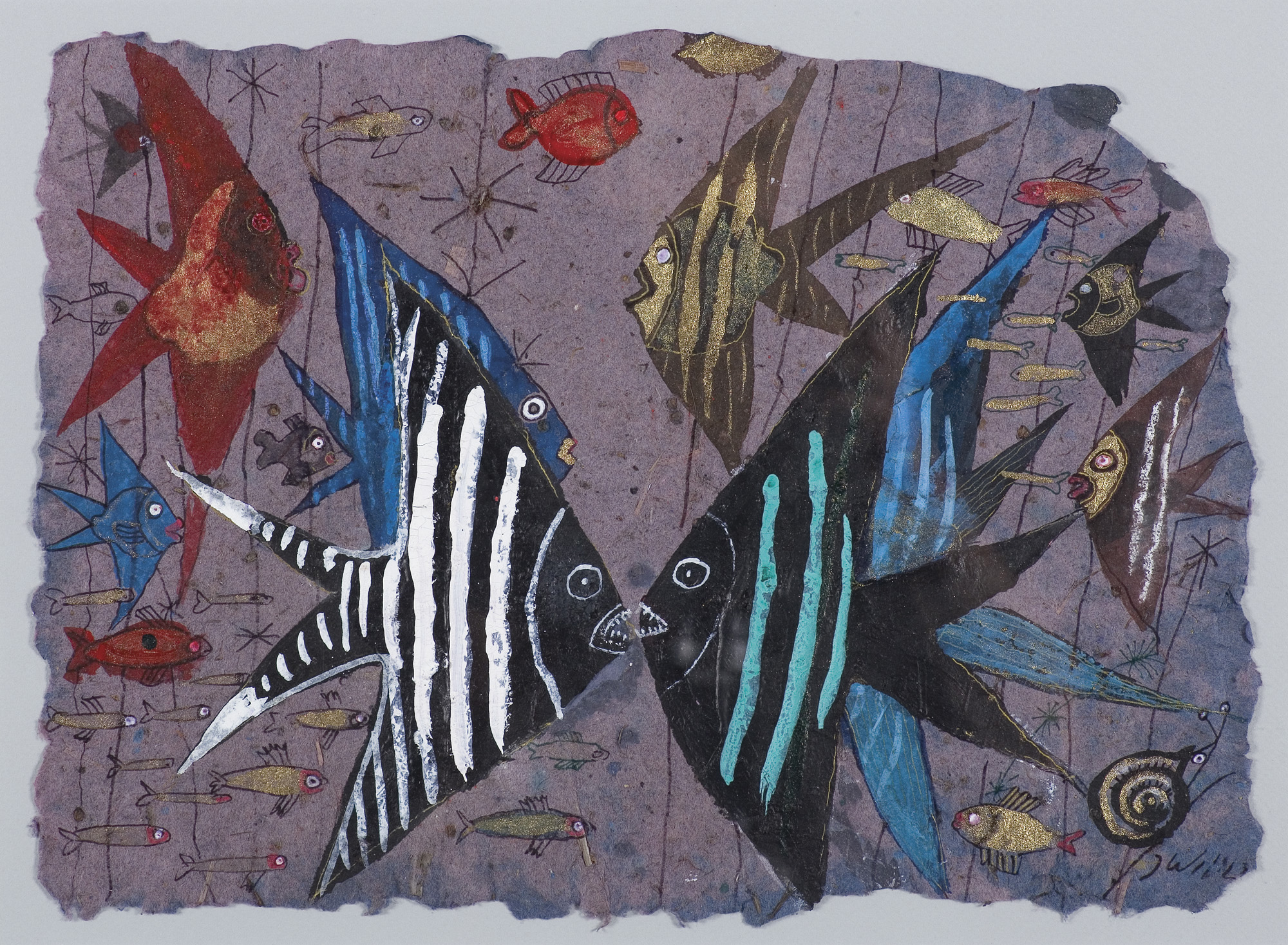 gwasz, tusz pióro, pastel, akryl, papier czerpany