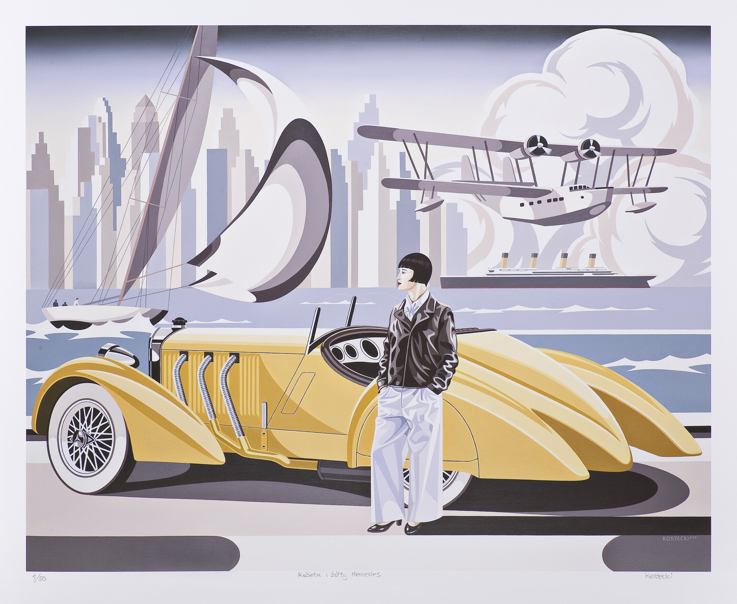 KOBIETA I ŻÓŁTY MERCEDES 1/50