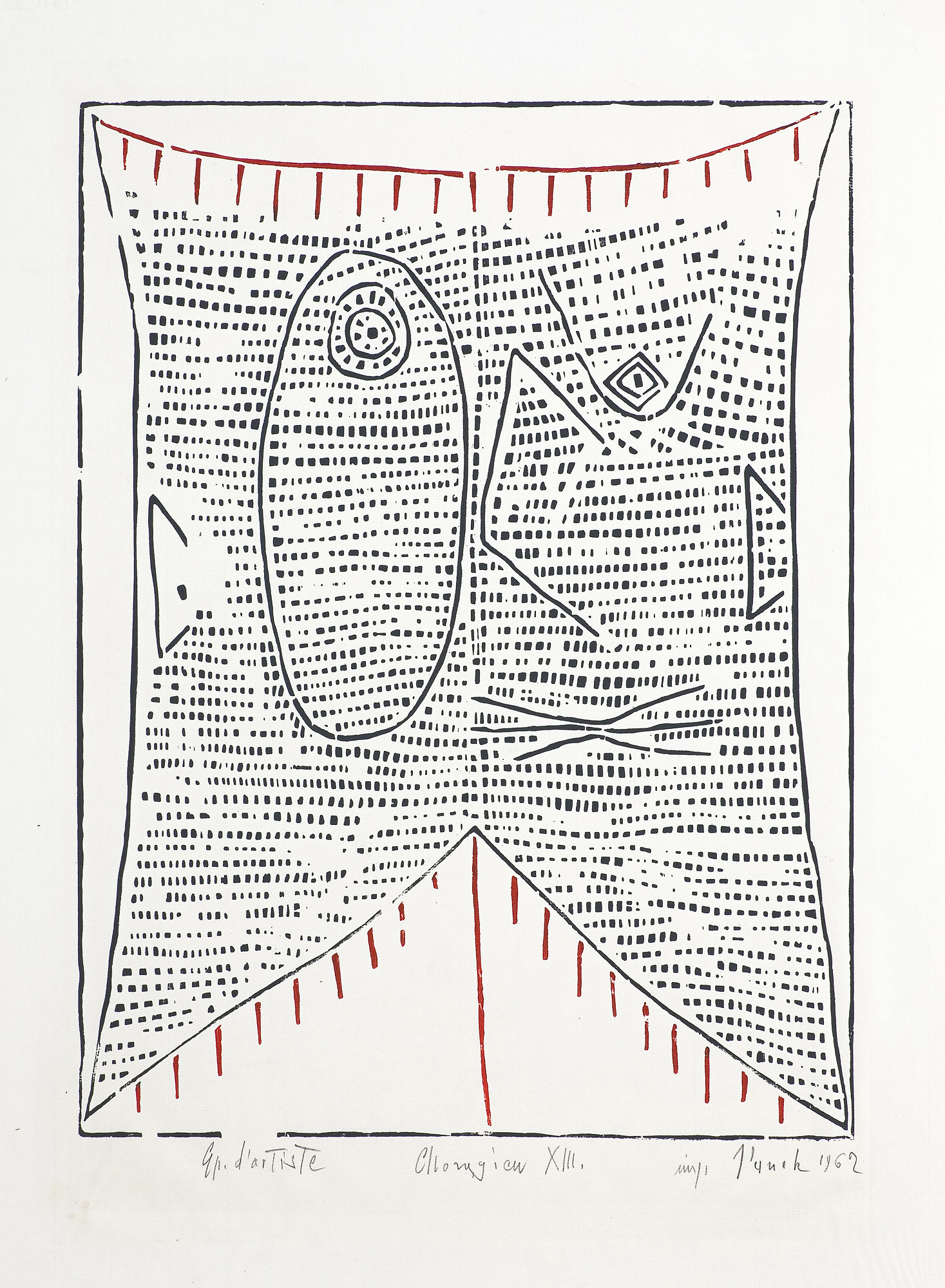 Jerzy Panek (Tarnów 1918 - Kraków 2001) odbył studia graficzne w Państwowym Instytucie Sztuk Plastycznych w Krakowie (1937-1939). Kontynuował je w Kunstgewerbeschule (1940-1942), a następnie na Wydziale Malarstwa ASP w Krakowie (1945-1948, dyplom 1955). W 1955 odbył podróż do Chin. Przez rok uczył rysunku i malarstwa na Wydziale Form Przemysłowych ASP w Krakowie (1967-1968). Od początku lat 50. skupił się na technice drzeworytu, którą traktował niekonwencjonalnie, mianowicie jako okazję do pracy na pograniczu rzeźby. Klocki drzeworytnicze Panka odznaczały się nie tylko wielkimi rozmiarami, ale i tym, że ich "powierzchnie drukujące" zredukowane były do syntetycznych, oszczędnych zarysów kształtów na szerokich obszarach bieli. Tematyka jego drzeworytów obracała się wokół ludowych, wiejskich i małomiasteczkowych spraw i klimatów. Artysta szczególnie chętnie portretował zwierzęta. Jako grafik zyskał międzynarodową renomę i wiele nagród. W latach 70. zajął się w szerszym zakresie malarstwem, tworząc serie "Autoportretów", nacechowanych rubaszną autoironią.