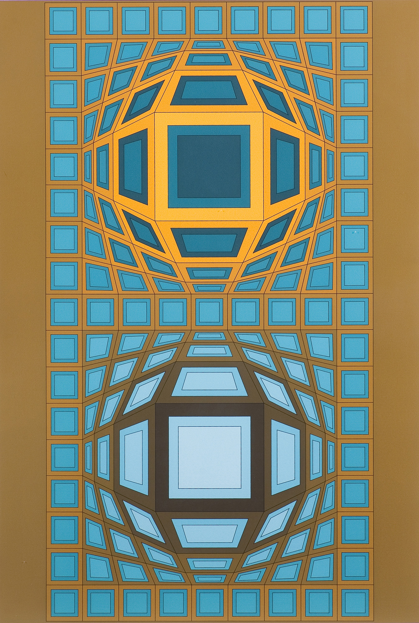 Victor Vasarely (Pécs 1906 - Paryż 1997) -malarz i grafik francuski pochodzenia węgierskiego. Przedstawiciel abstrakcji geometrycznej; od 1930 w Paryżu; stopniowo wprowadza do swych prac problem ruchu, zmierzając do sztuki kinetycznej. Tworzy układy form dynamicznych, sugerujących ruch i przestrzeń; od 1955 powstawały cykle obrazów "optyczno-kinetycznych", sprawiających wrażenie pulsowania, falowania, wirowania lub migotania . Uważany za inicjatora op-artu.